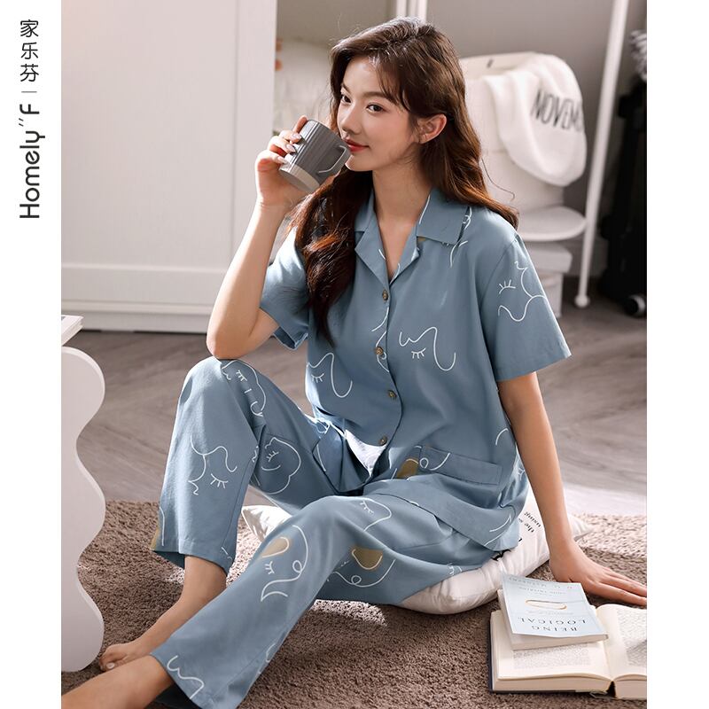 Lenzingモーダルパジャマレディース夏半袖パンツホームサービス夏薄氷シルクラージサイズツーピーススーツ jial59940817993