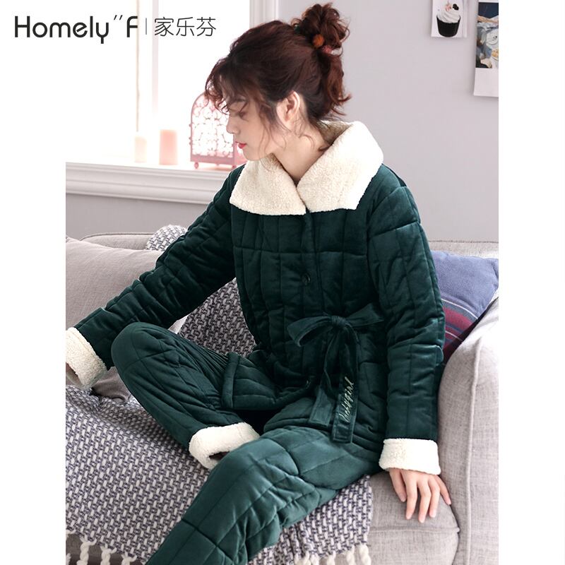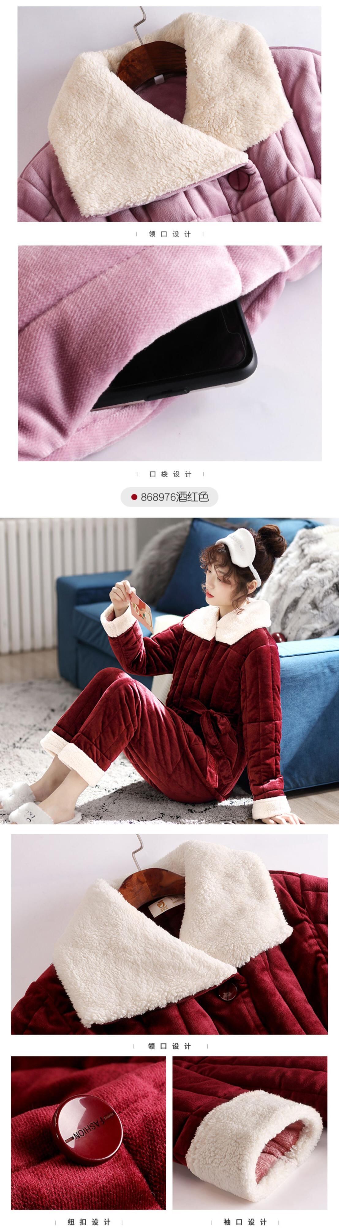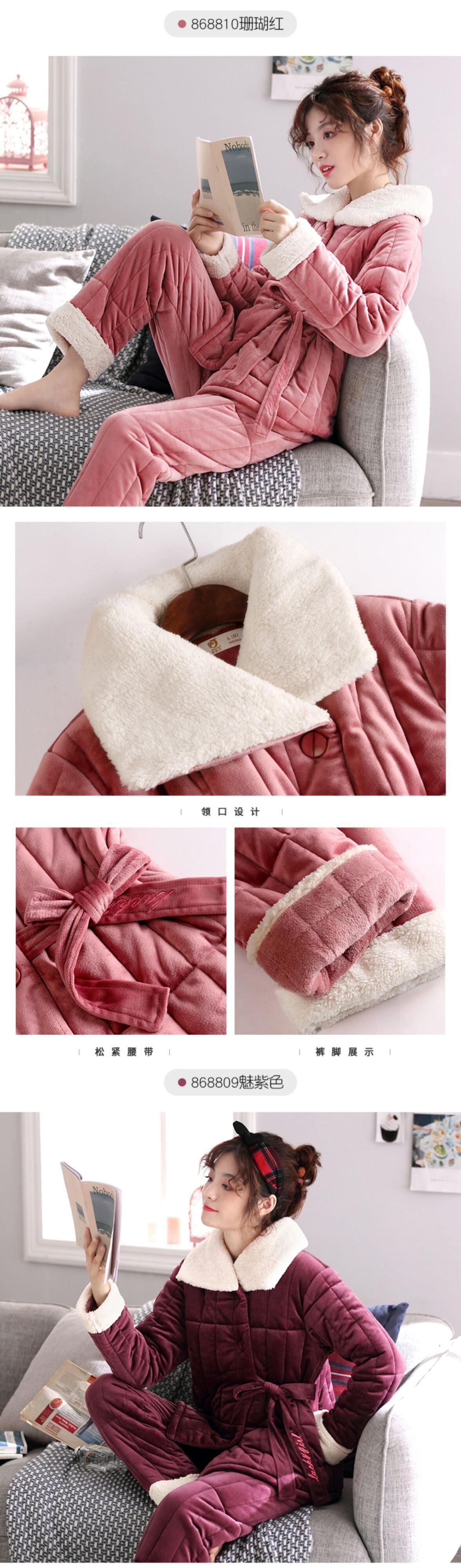 パジャマの女性秋、冬、冬の3層の厚手のキルティングジャケットコーラルフリースとベルベットの暖かいフランネルホームサービススーツ jial75042961623