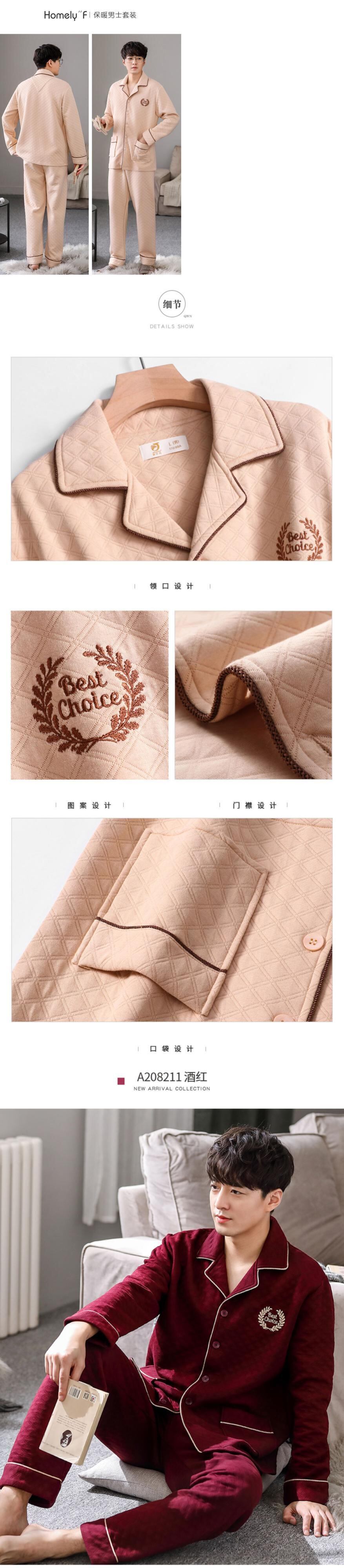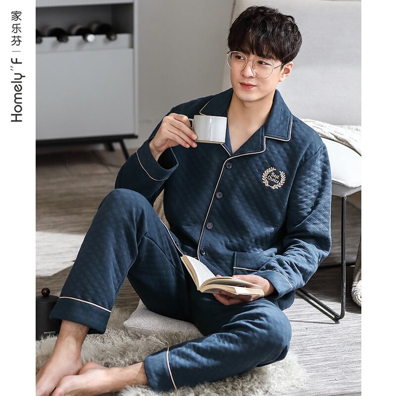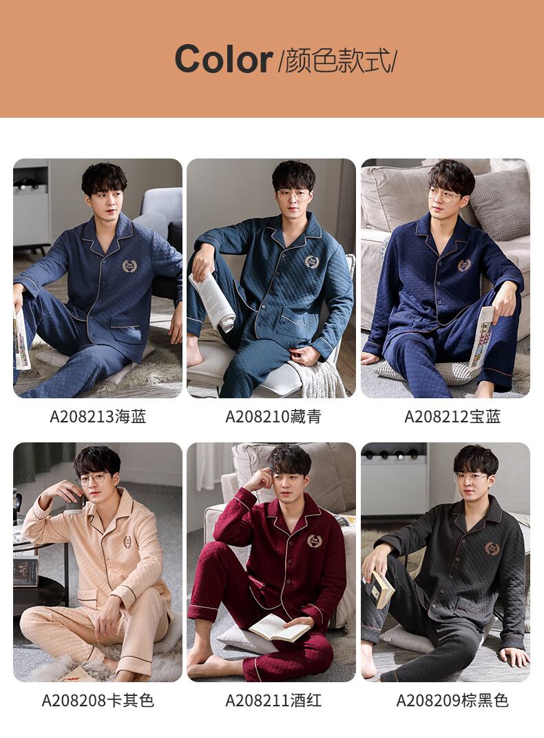パジャマメンズ春と秋の長袖純綿厚手ホームサービス秋と冬の薄片綿エアコットンキルティング中間層 jial25615128255