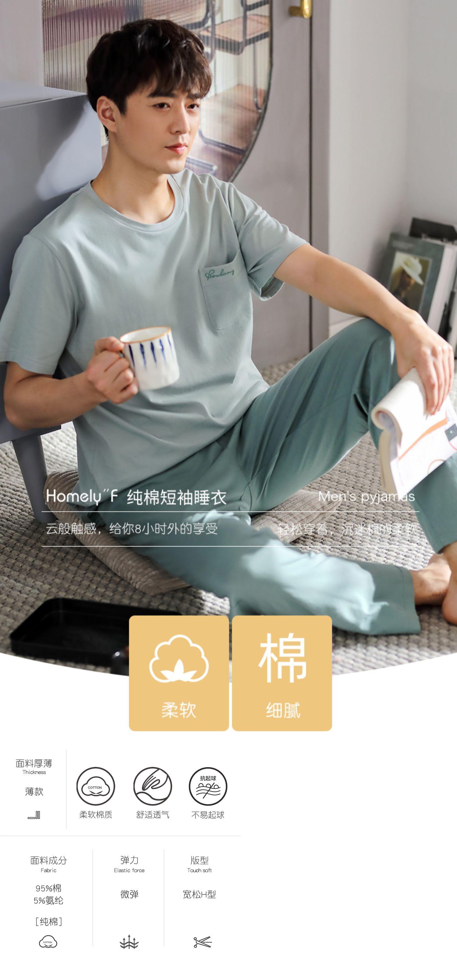 【ライクラコットン】パジャマメンズサマーコットン半袖パンツホームサービスサマー薄手プラスサイズスーツ jial5511142497