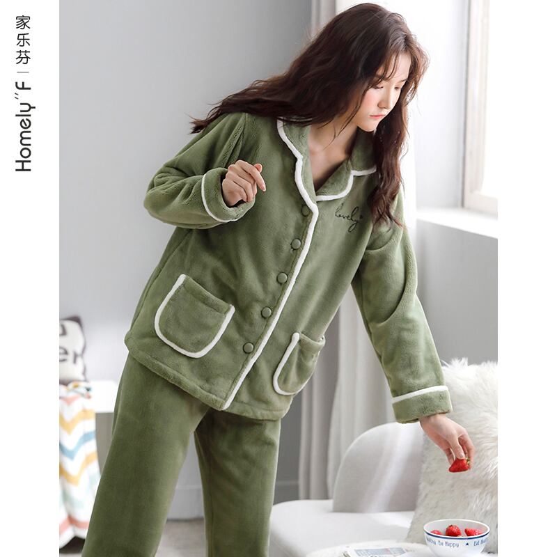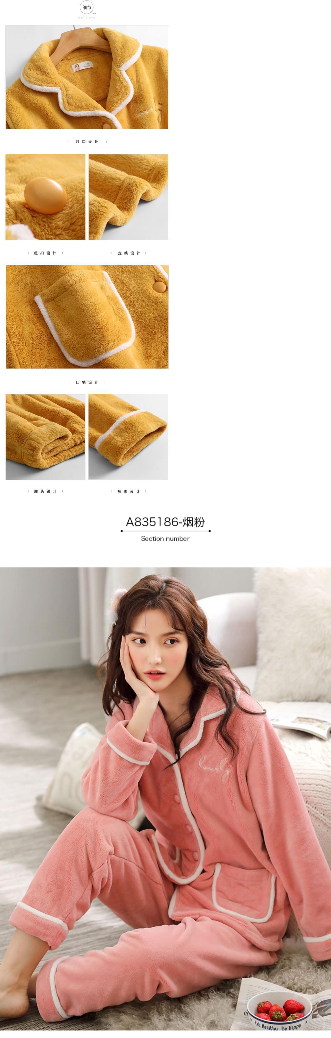 パジャマレディース秋冬コーラルベルベット増粘プラスベルベット暖かさフランネルホームサービス冬冬スーツ jial68167625957