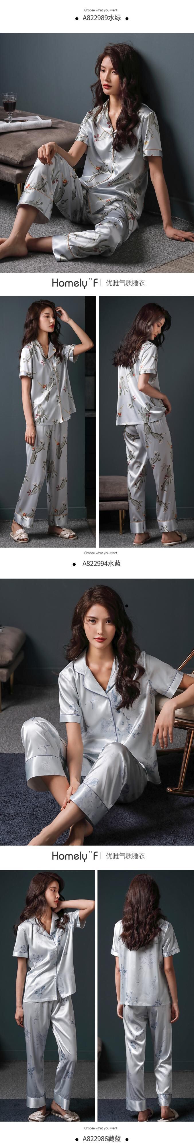 パジャマレディースサマーシルクアイスシルク半袖パンツホームサービスサマーシンシルクシミュレーションマザーツーピーススーツ jial97481068445