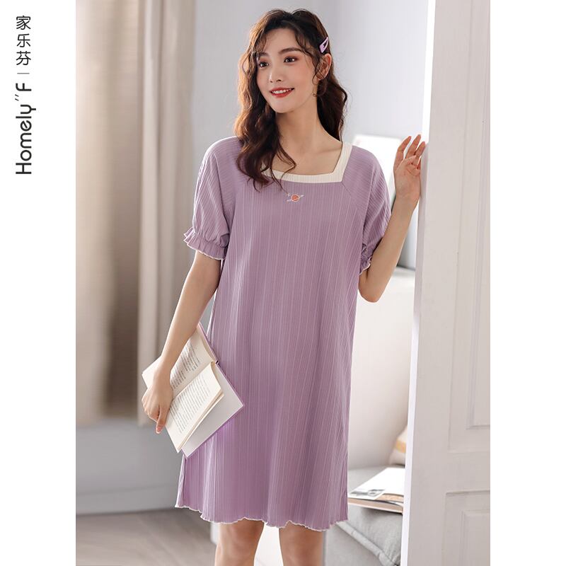 ナイトスカートレディースパジャマ夏夏薄手コットン半袖キュートスウィートルースホームサービス新作2021年 jial58301323821