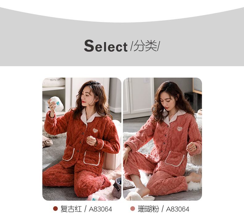 パジャマレディース秋冬モデル冬フランネル厚手プラスベルベット暖かい珊瑚フリースホームサービス冬プラスサイズのスーツ jial84885974673