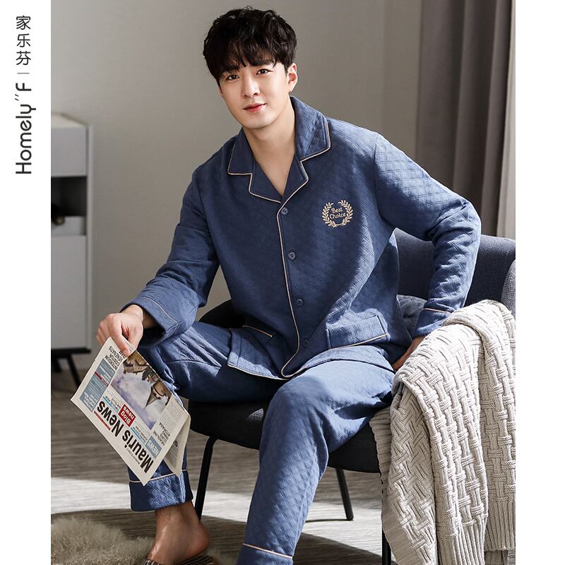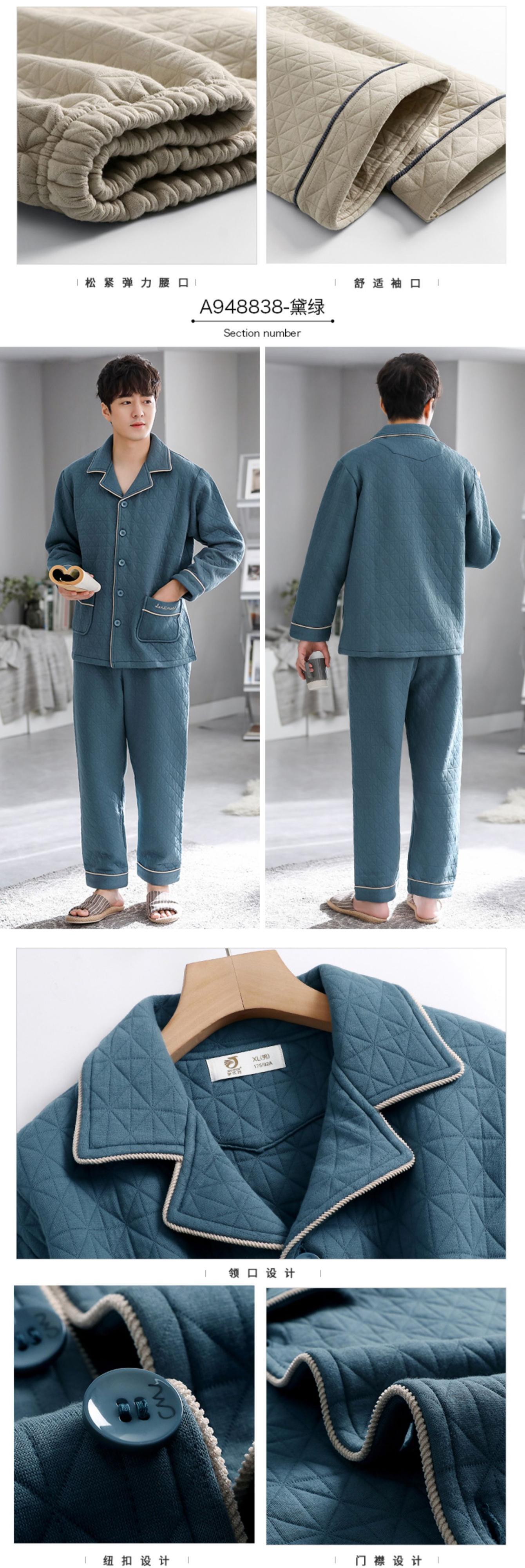 パジャマメンズ春と秋の長袖純綿厚手ホームサービス秋と冬の薄片綿エアコットンキルティング中間層 jial63461074738
