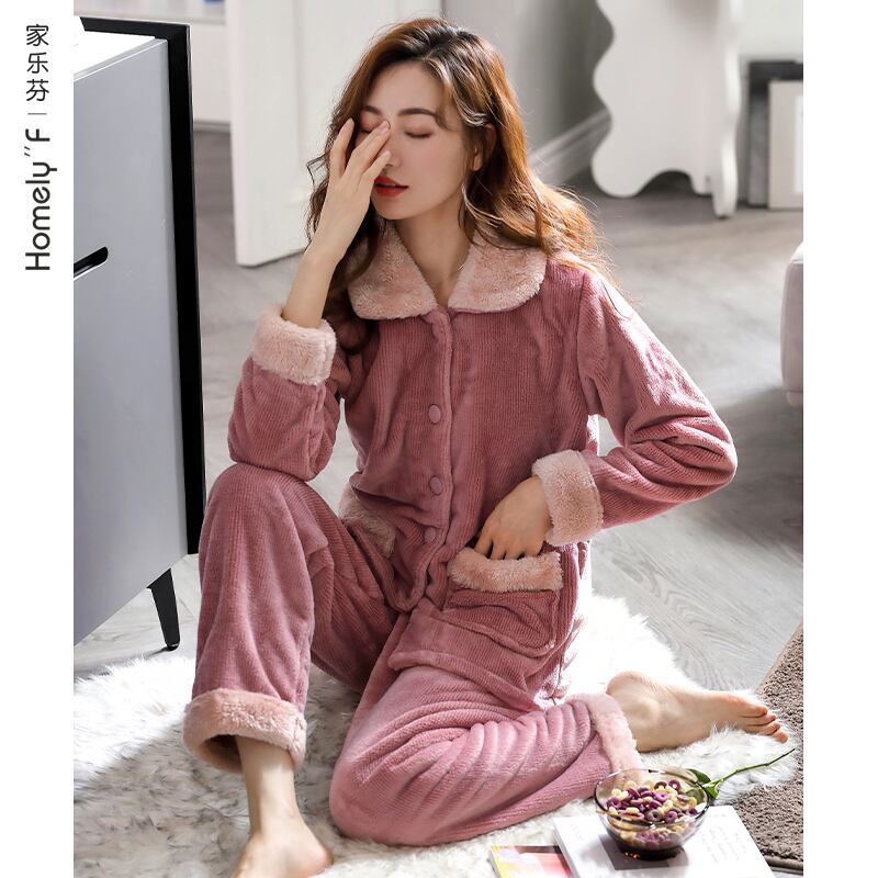 パジャマレディース秋冬モデル冬フランネル増粘プラスベルベットウォームコーラルフリースホームサービス冬プラスサイズスーツ jial42287191998