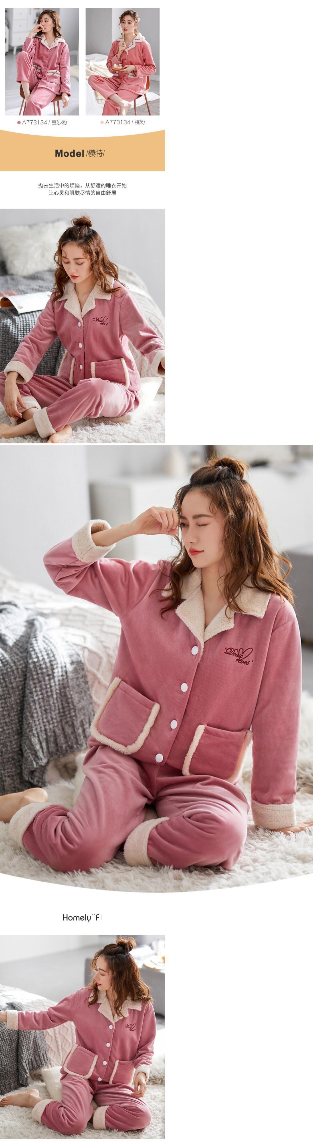パジャマレディース秋冬コンポジットキルティングコーラルフリースシックニングプラスベルベット暖かさフランネルホームサービススーツ jial54581233021