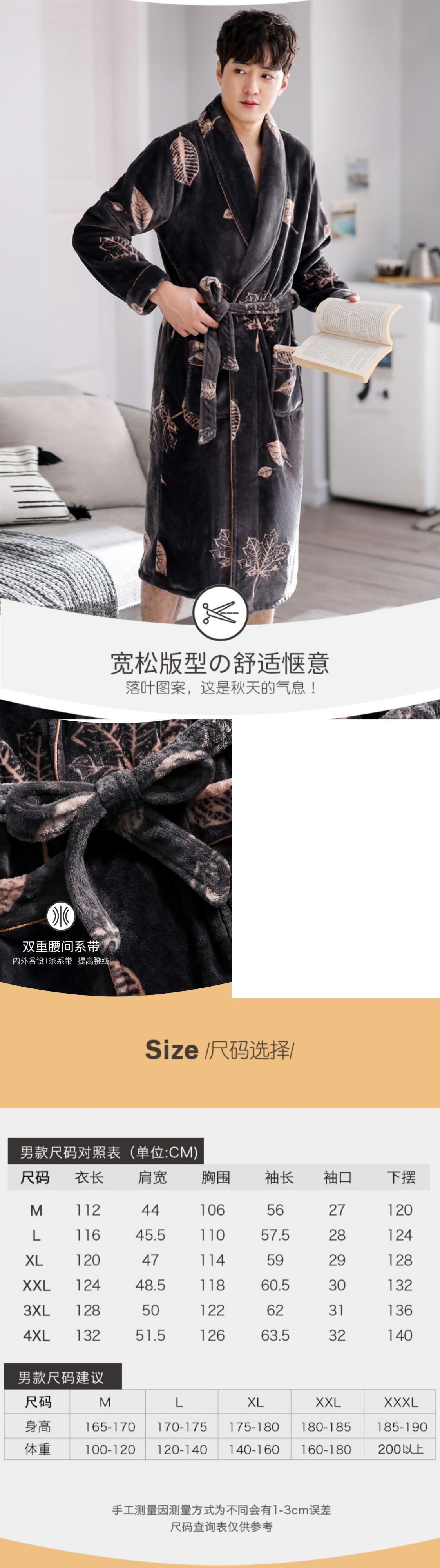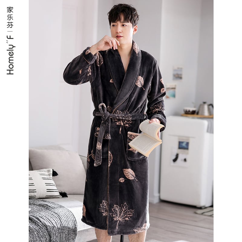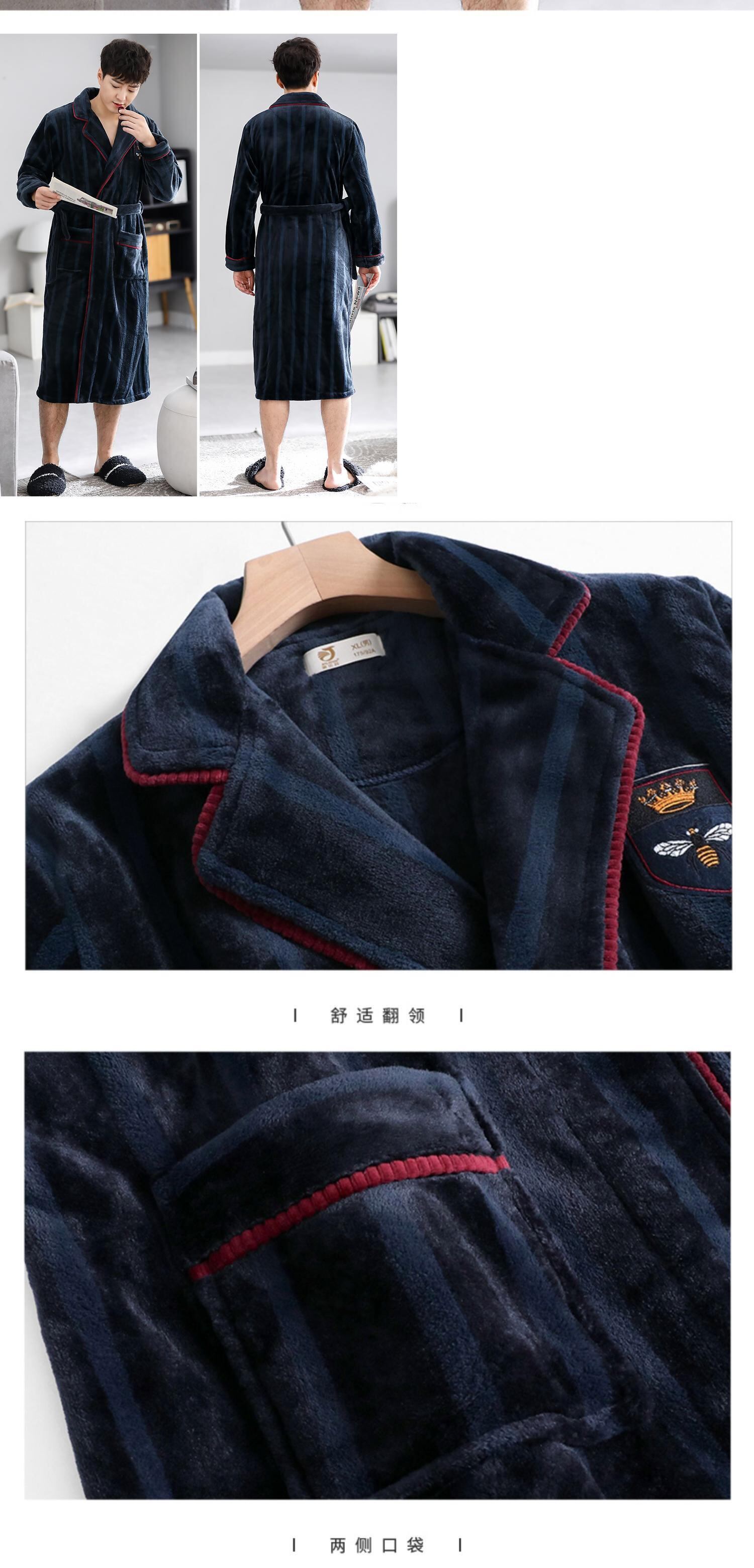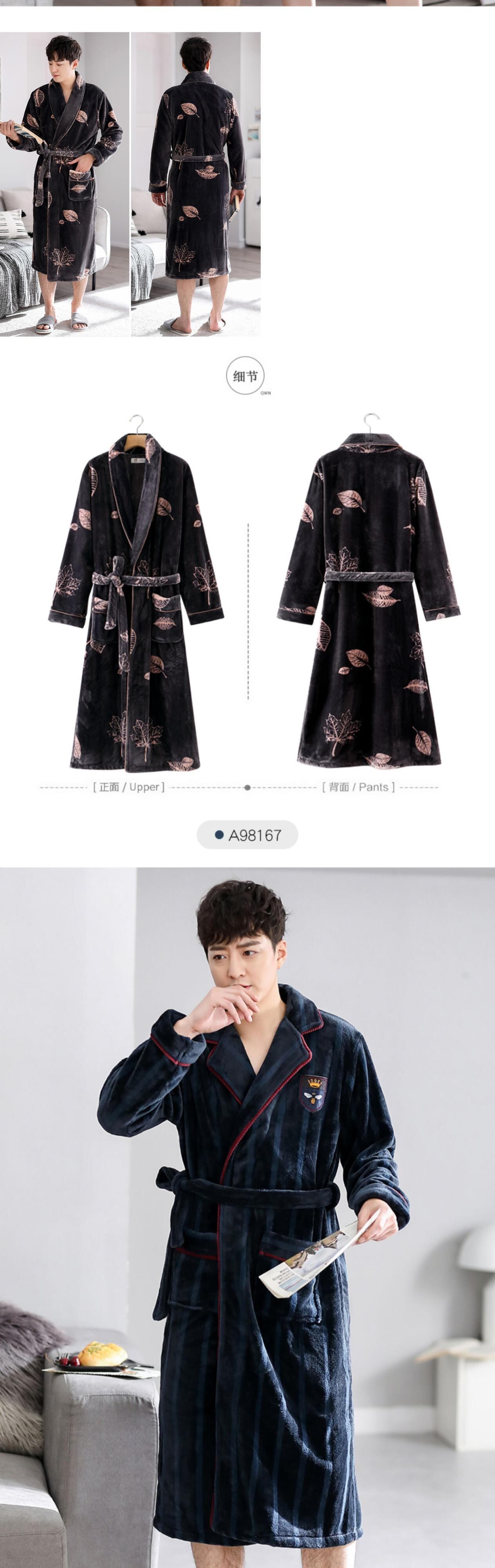 ナイトガウンメンズ秋冬フランネル厚手暖かさルーズラージサイズバスローブ冬サンゴフリースロングバスローブパジャマ jial8770534451
