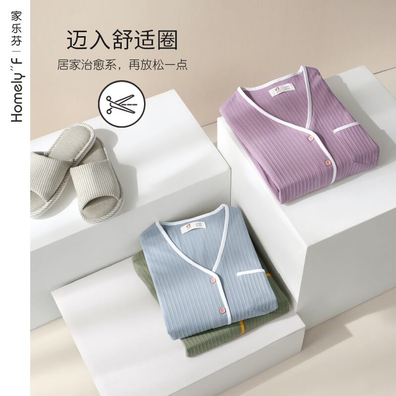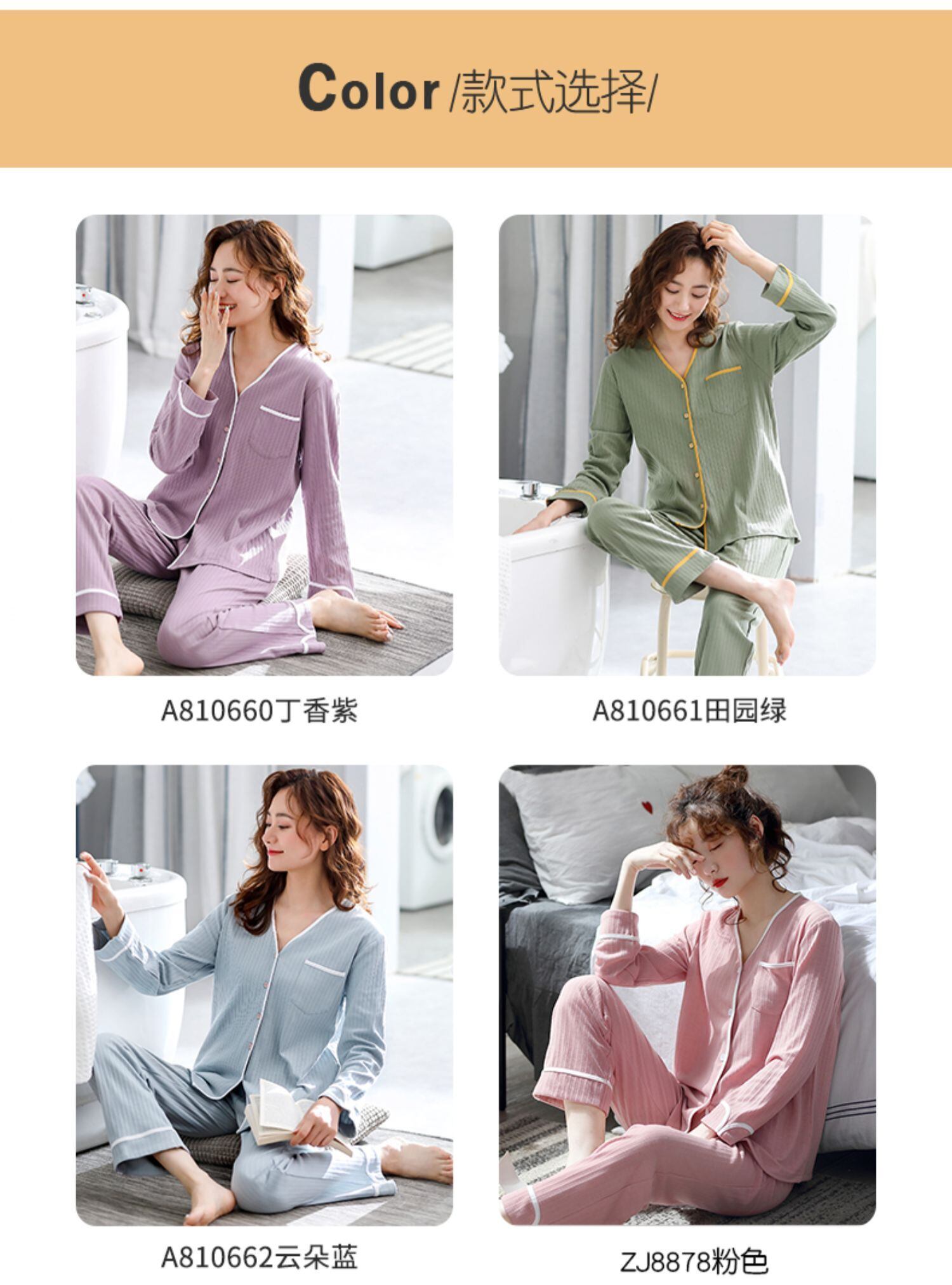 パジャマレディース春秋秋秋秋秋コットン長袖ホームサービスコットンVネックカーディガン薄手のスーツ jial30310349032