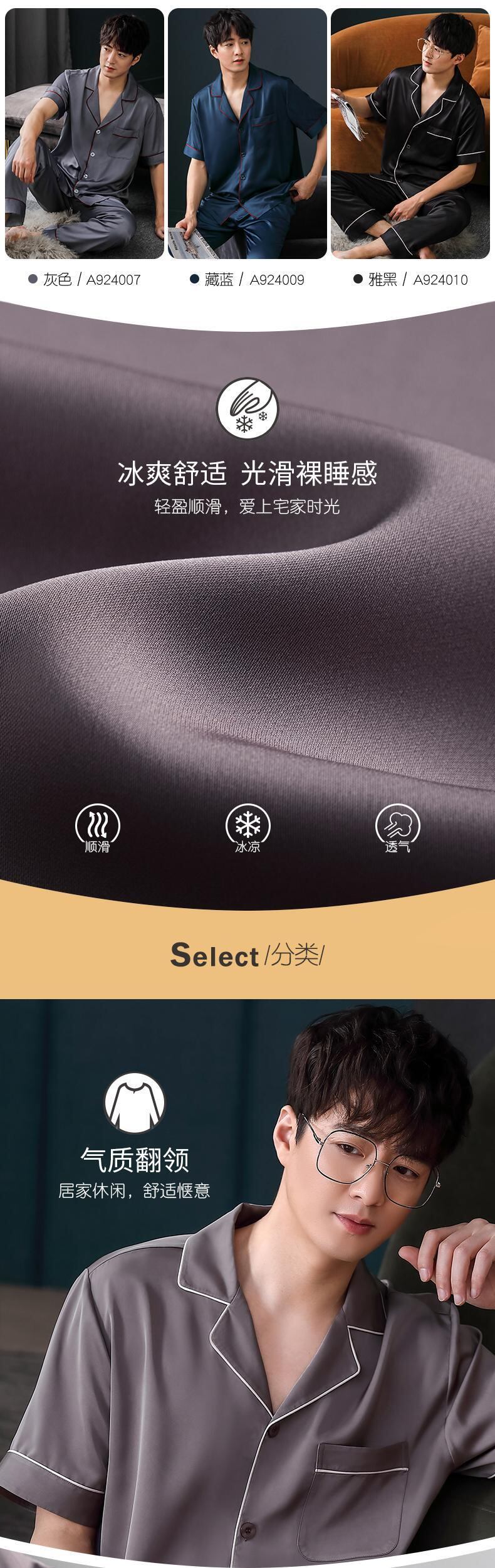 パジャマメンズ夏夏アイスシルク半袖パンツシルクホームサービスメンズシミュレーションシルク薄手大サイズスーツ jial66283329649