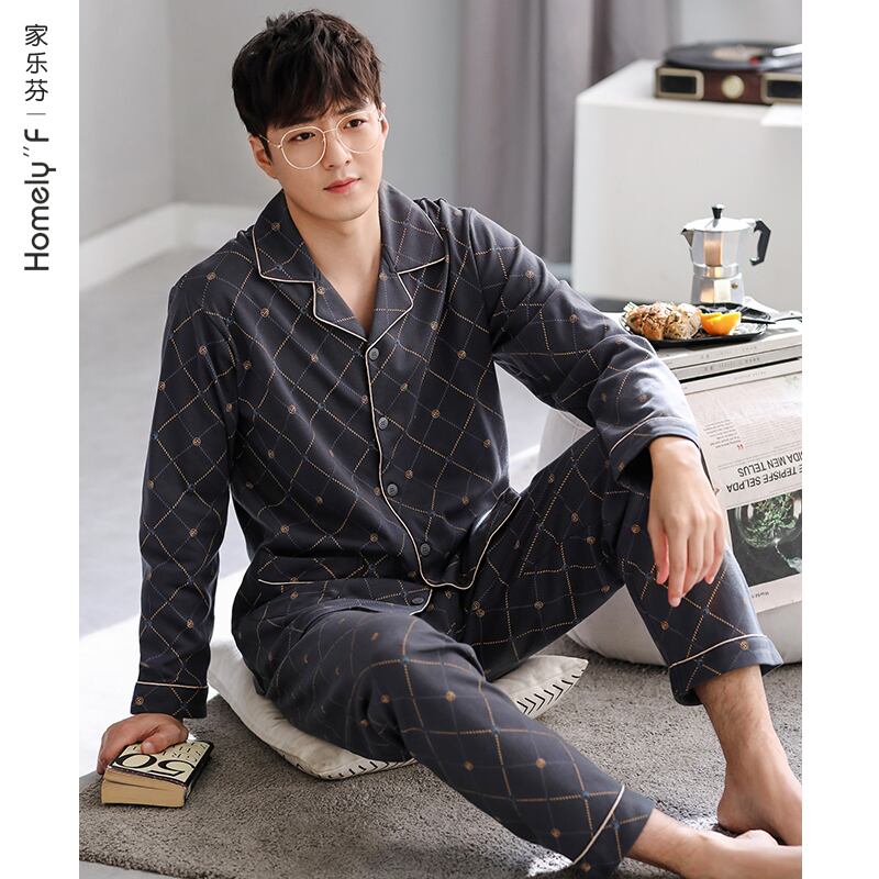 パジャマメンズ秋春秋モデル秋コットン長袖ホームサービスコットンメンズメンズ秋冬モデルプラスサイズスーツ jial29032515792