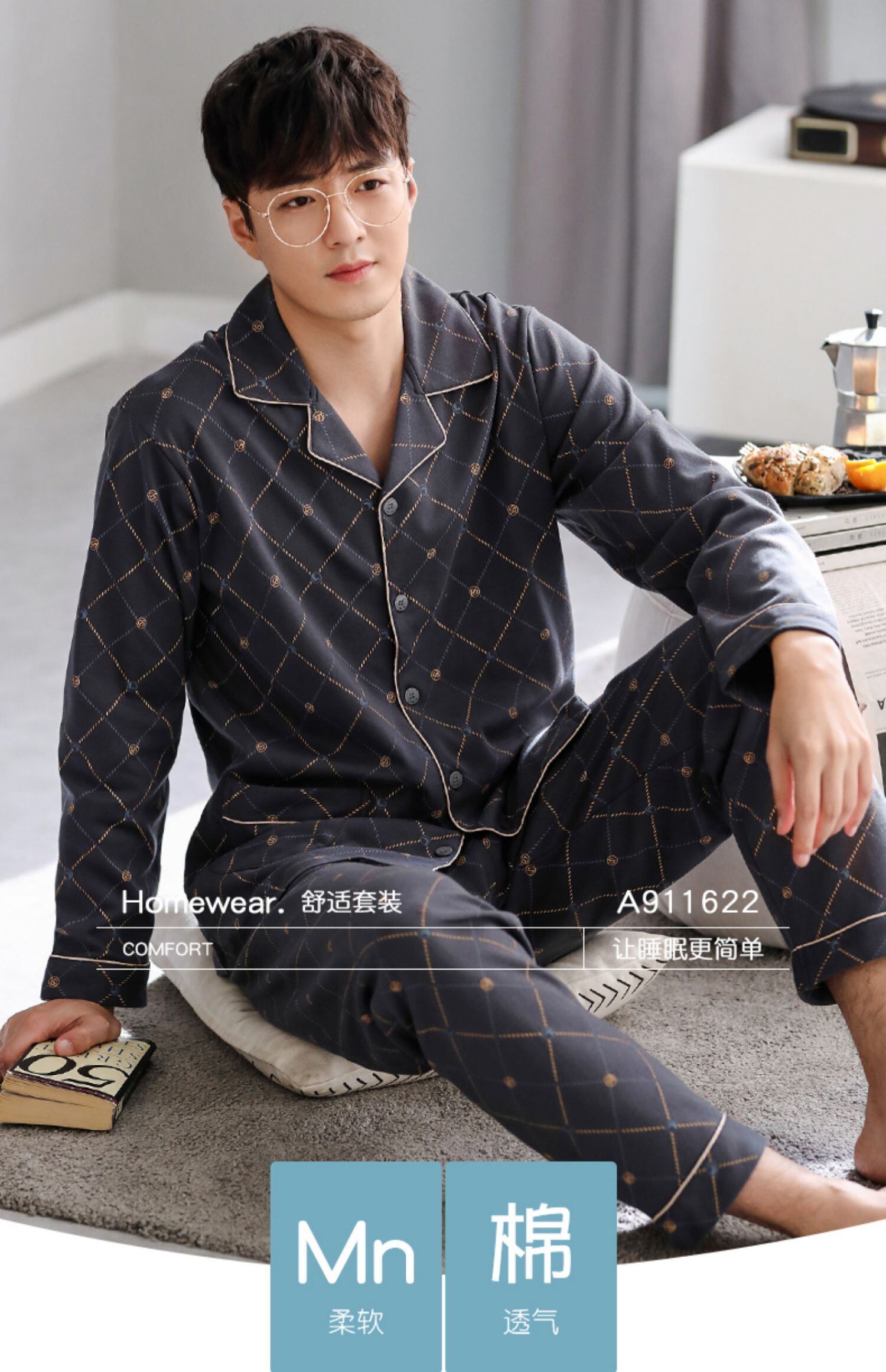 パジャマメンズ秋、春、秋モデル、秋の綿長袖ホームウェア、綿メンズ、メンズ秋冬モデル、冬のスーツ jial81002545882