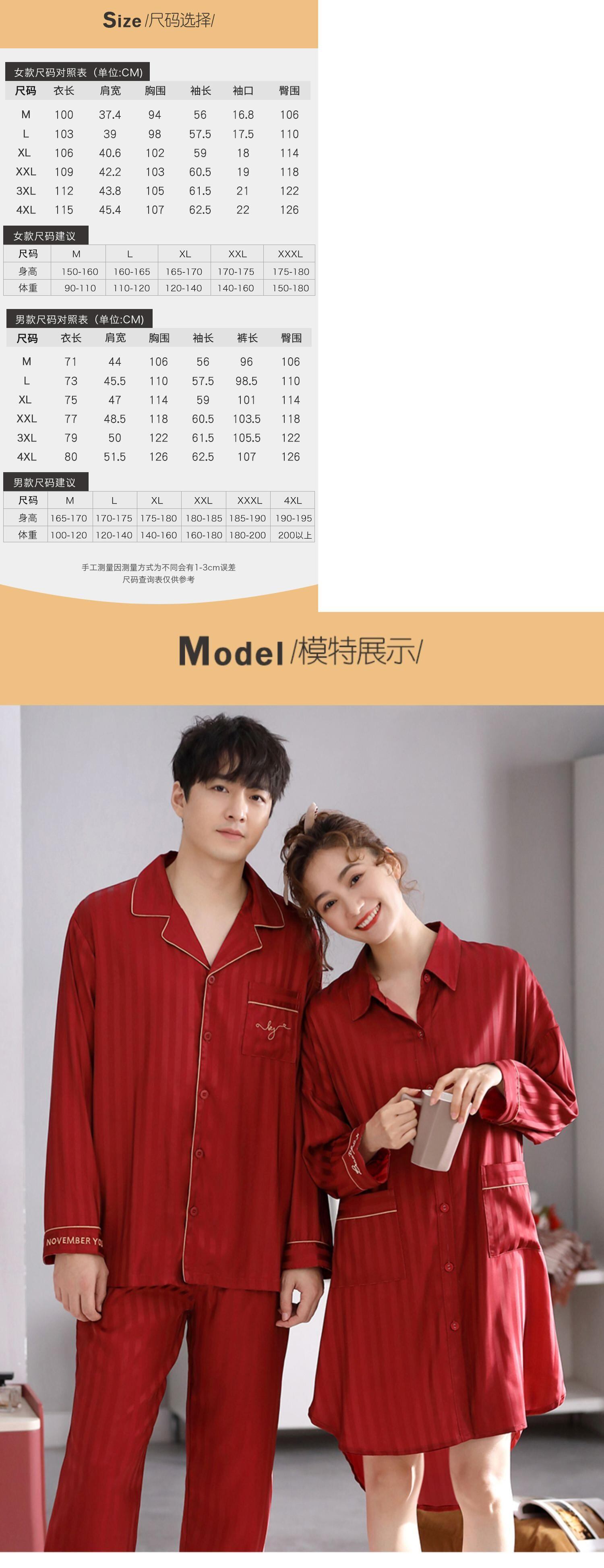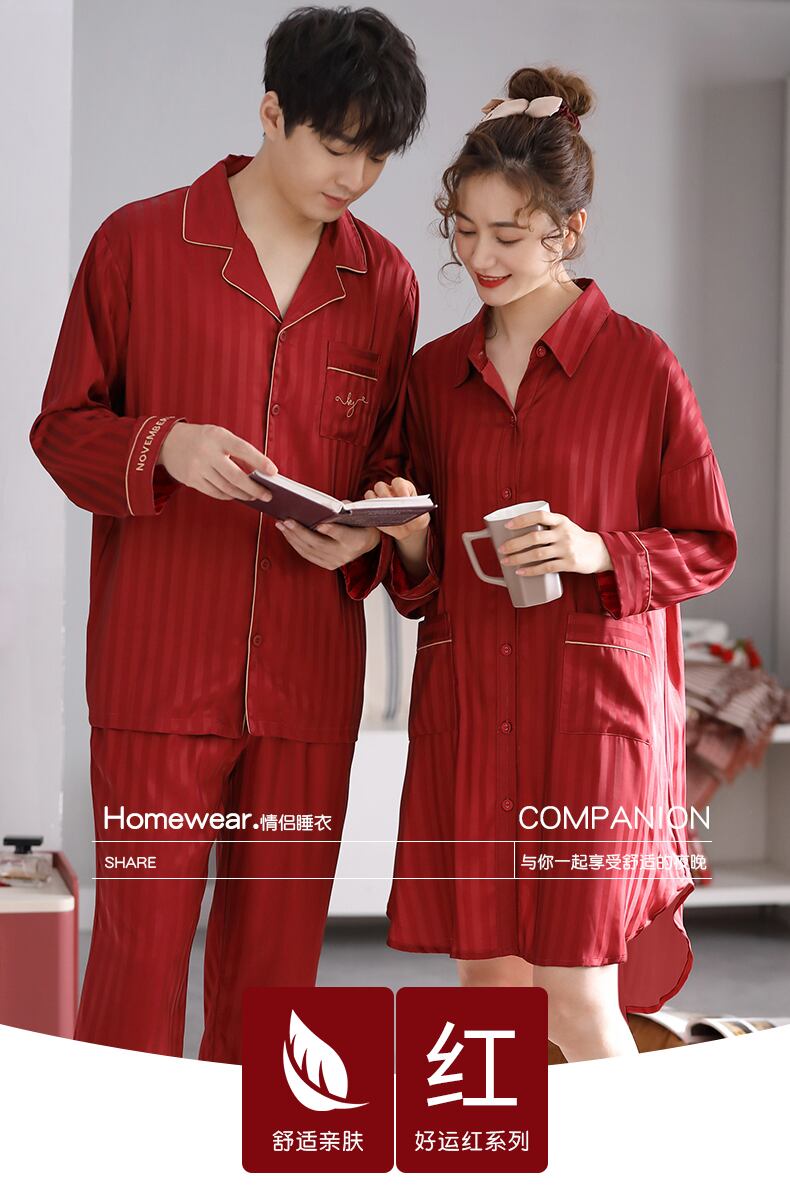 結婚式のパジャマ女性のネグリジェ新婚カップルスーツ花嫁大きな赤い氷シルク春と秋のホームサービス男性の夏の長袖 jial35757984492