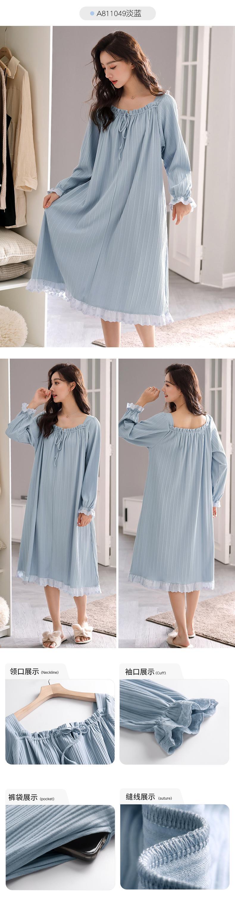 ネグリジェレディースパジャマ春秋モデル秋綿長袖綿薄手春夏気質ロングホワイトプリンセス jial30362297265
