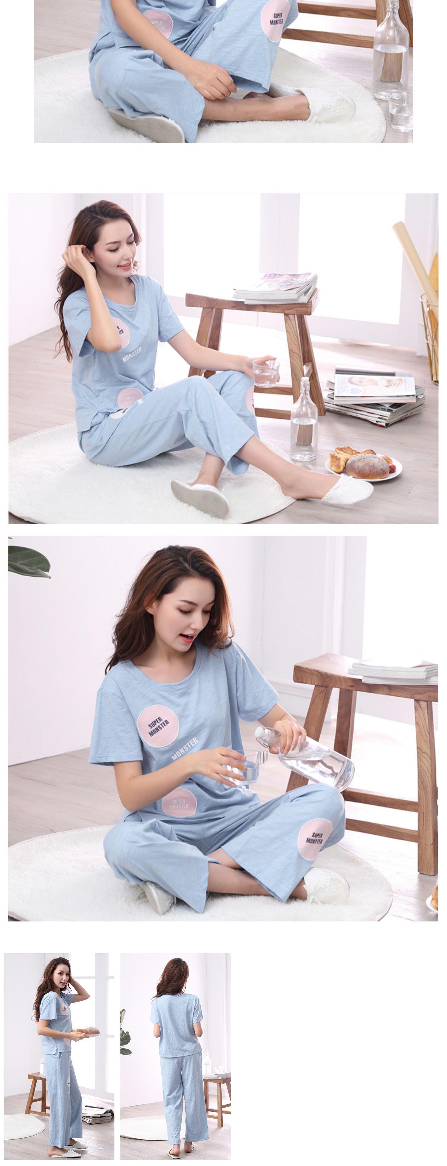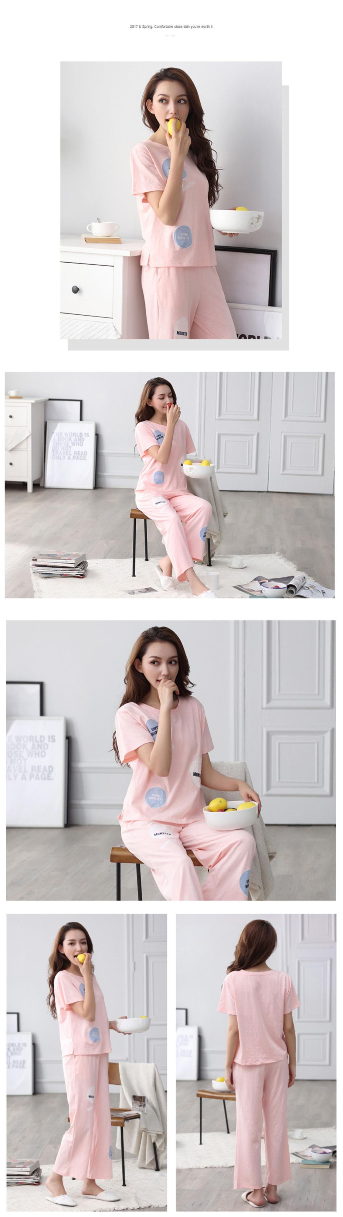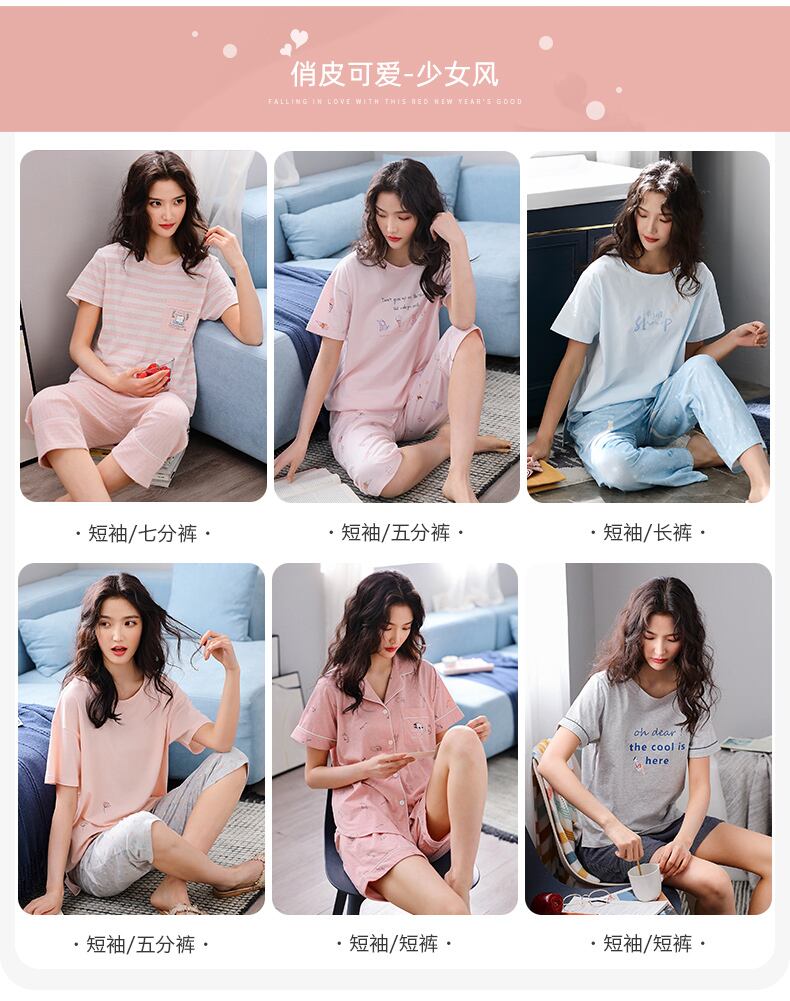 パジャマレディースサマーコットン半袖パンツホームサービスルーズカジュアル夏のツーピーススーツの外で着用可能 jial92013907763