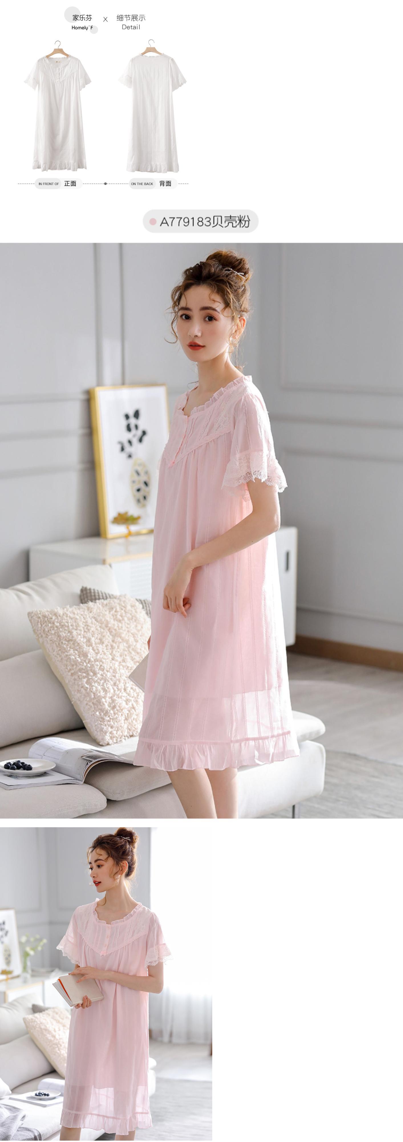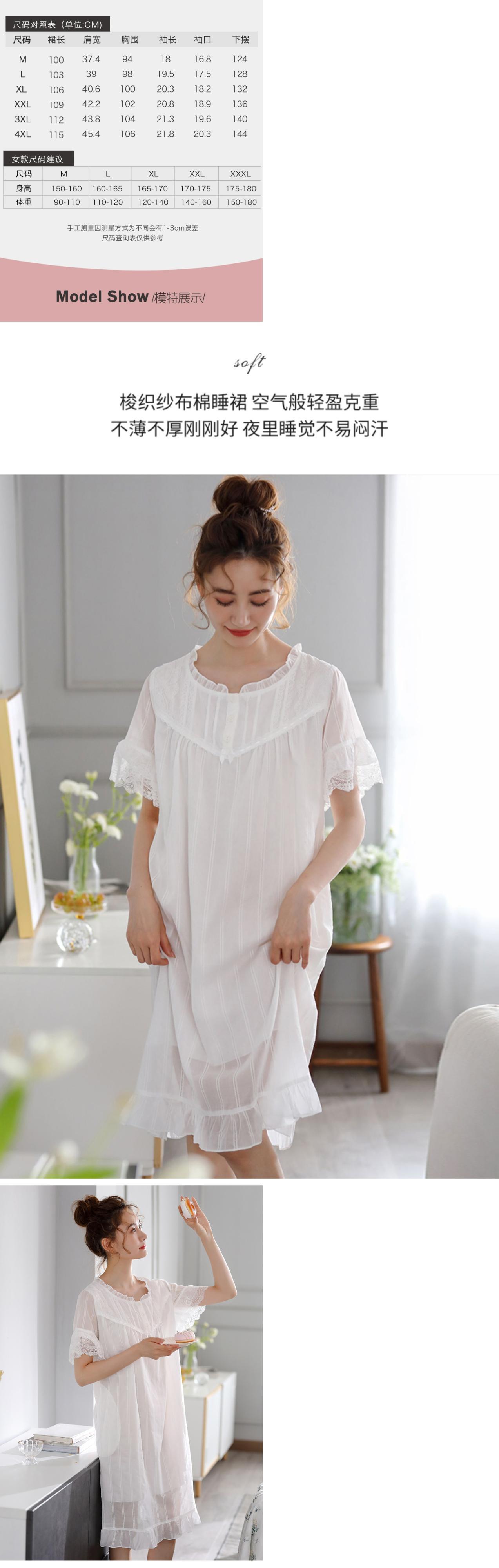 織り綿ガーゼネグリジェレディースパジャマ夏夏純綿半袖綿薄片長断面白プラスサイズ jial8034212730