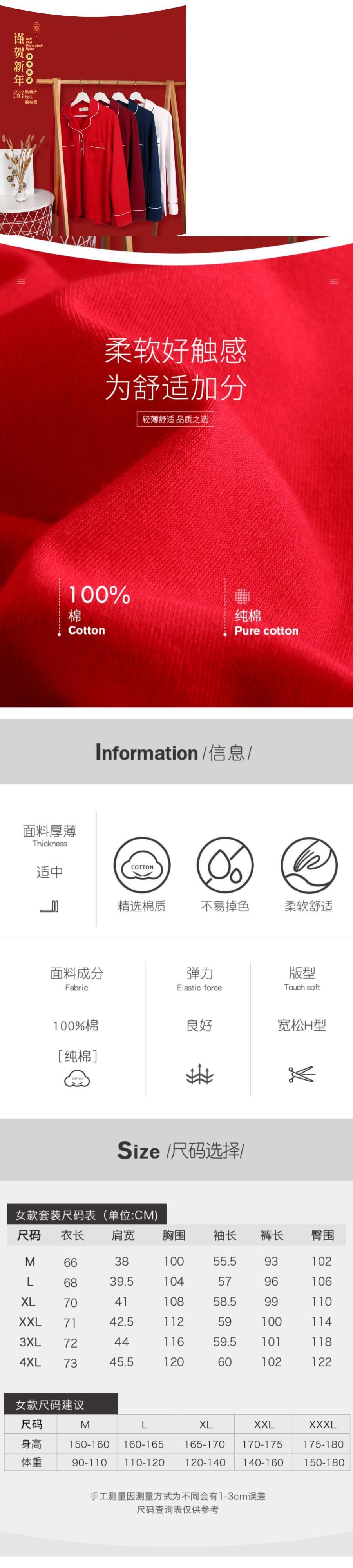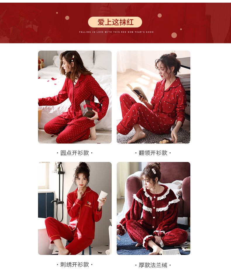 パジャマレディース春秋モデル秋綿長袖秋冬綿丑年丑レッドツーピーススーツの出生年 jial95088383517