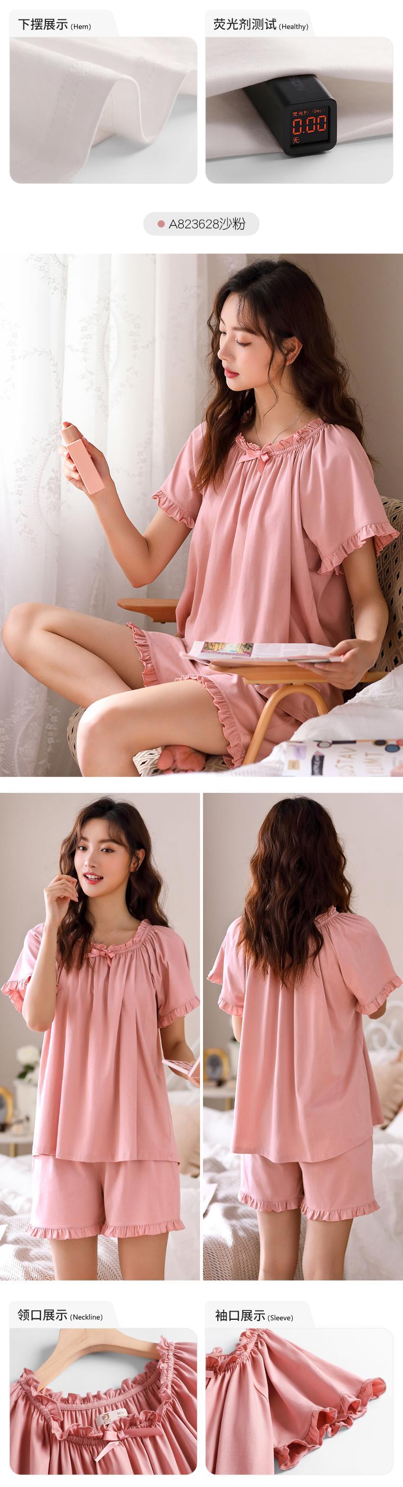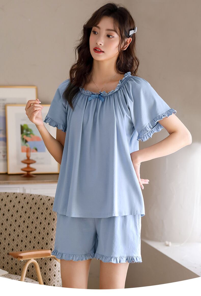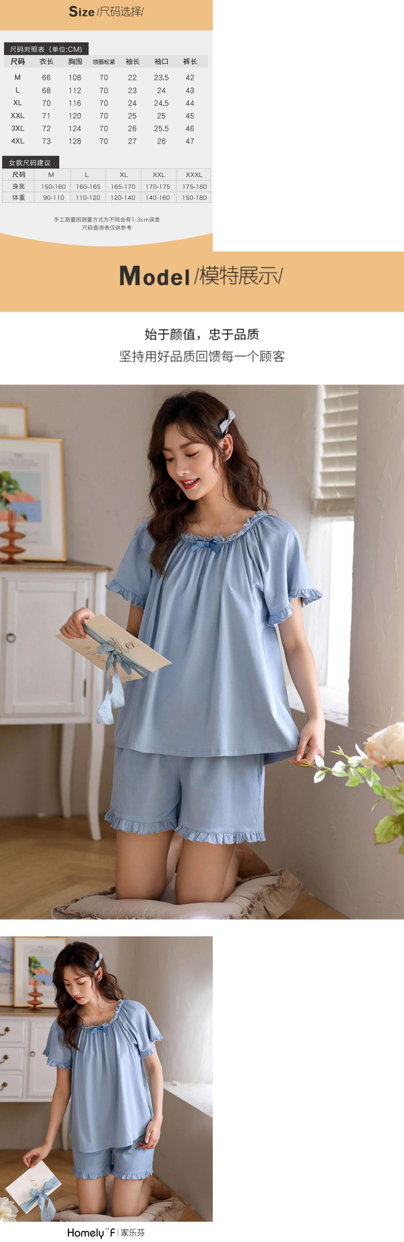 Jialefenパジャマレディースサマーコットン半袖ショーツホームサービスサマーシンコットンルーズラージサイズスーツ jial2156197690