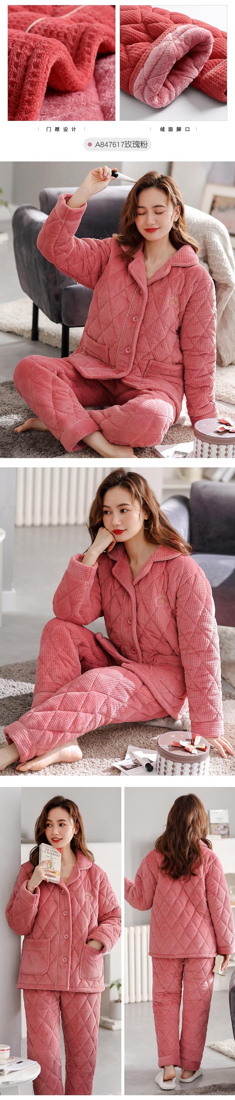 パジャマの女性は冬の厚めのキルティングフランネルとベルベットのコーラルフリースで暖かく保ちます秋と冬のモデル冬の赤い出生年 jial83590954475