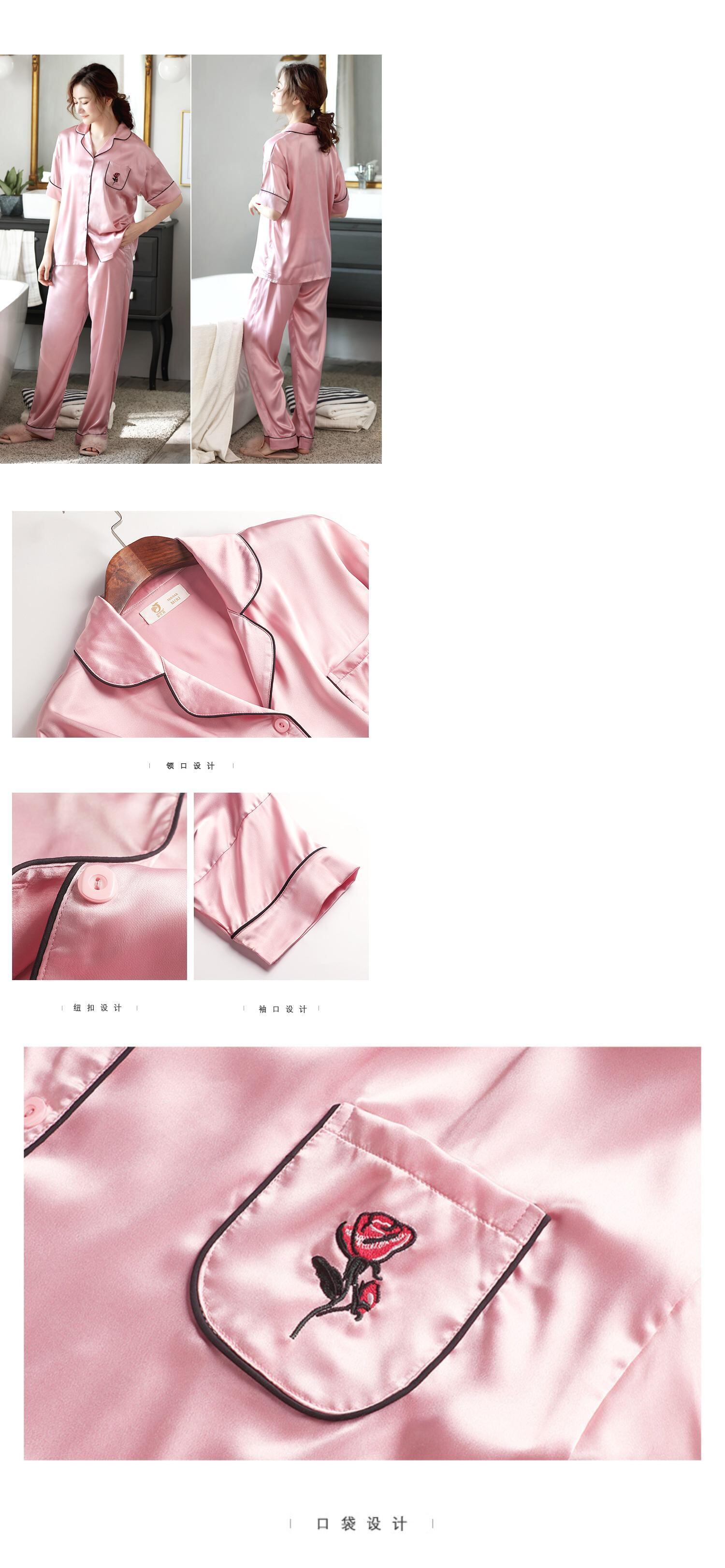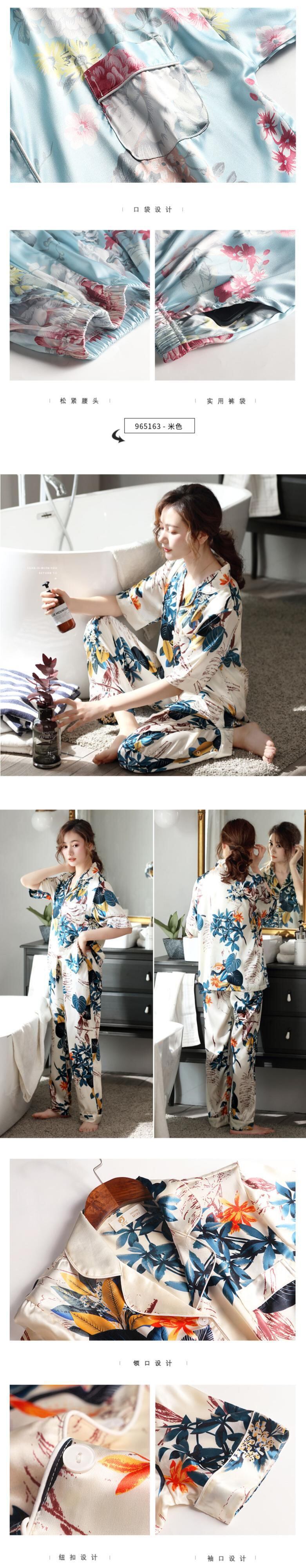 パジャマレディースサマーアイスシルク半袖パンツホームサービス夏薄片シミュレーションシルクフローラル中年お母さん jial20429130241