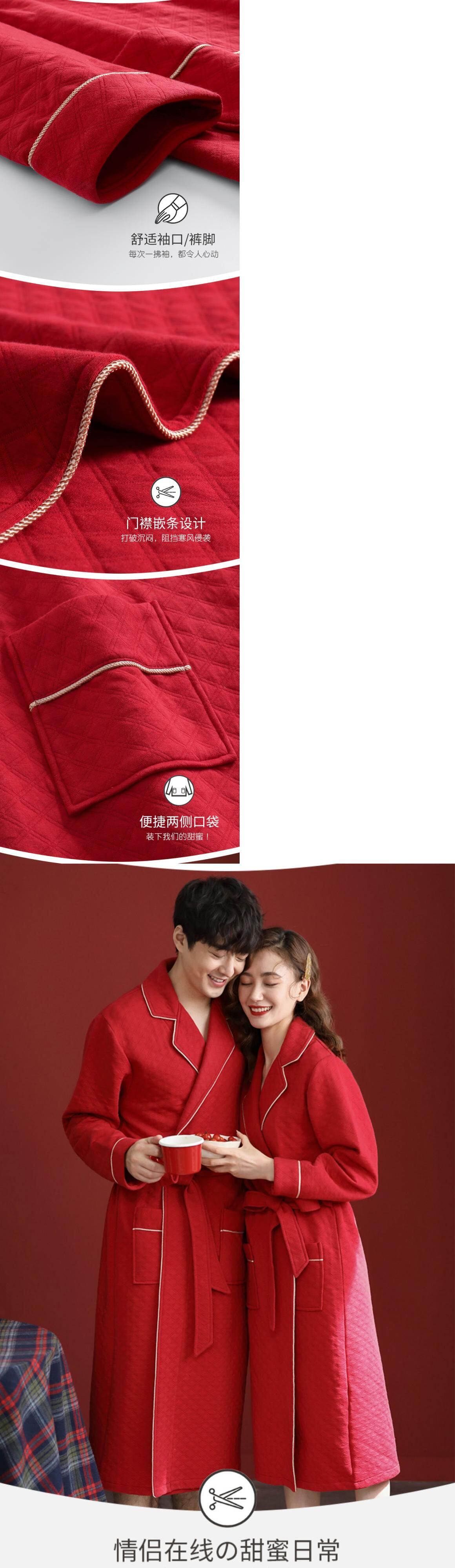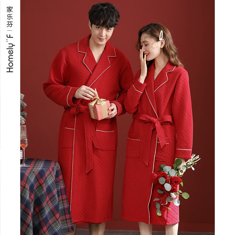 カップルパジャマ女性秋と冬の厚い綿のセクシーなネグリジェブライダルドレッシングガウンバスローブ男性大きな赤い新婚夫婦 jial16839780