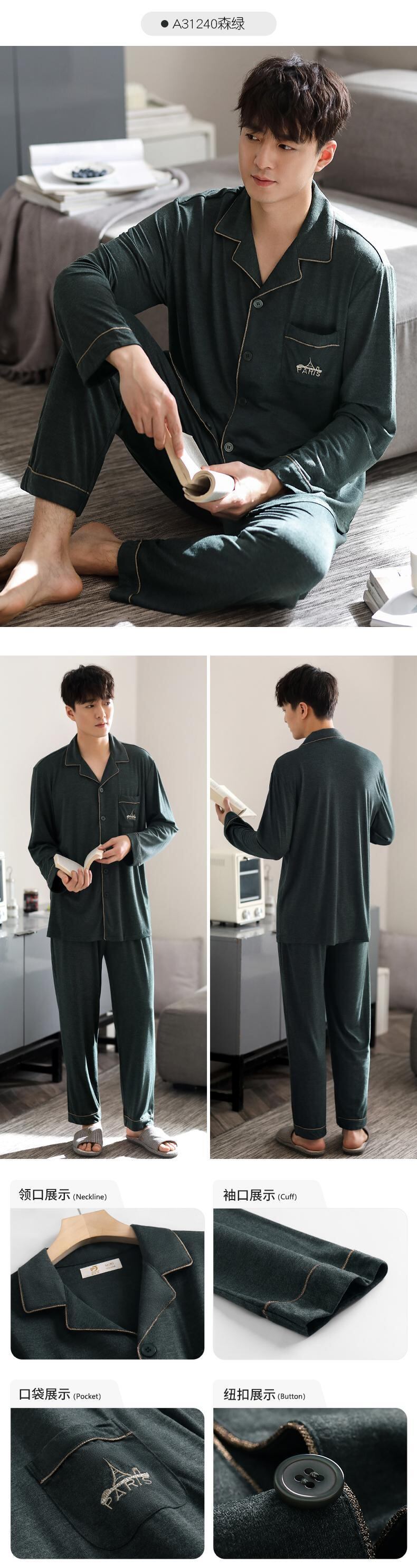 2021年新作パジャマメンズ春夏モーダル長袖ホームサービス春秋秋薄氷シルクスーツ jial33093477008