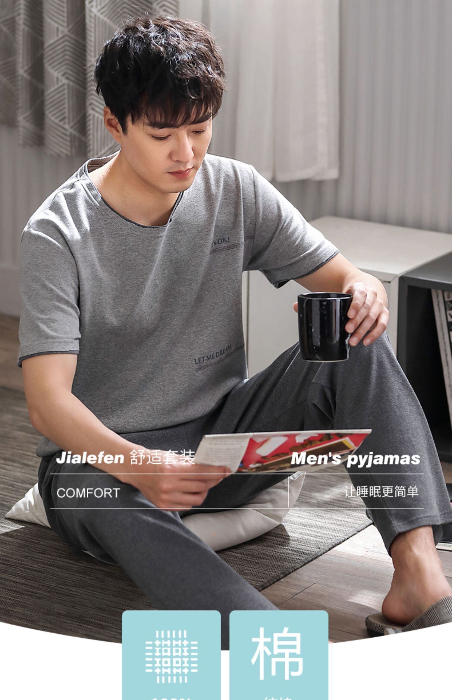 カルフールパジャマメンズサマーコットン半袖パンツプルオーバーホームサービスサマー薄手コットン中年お父さん jial2747591408