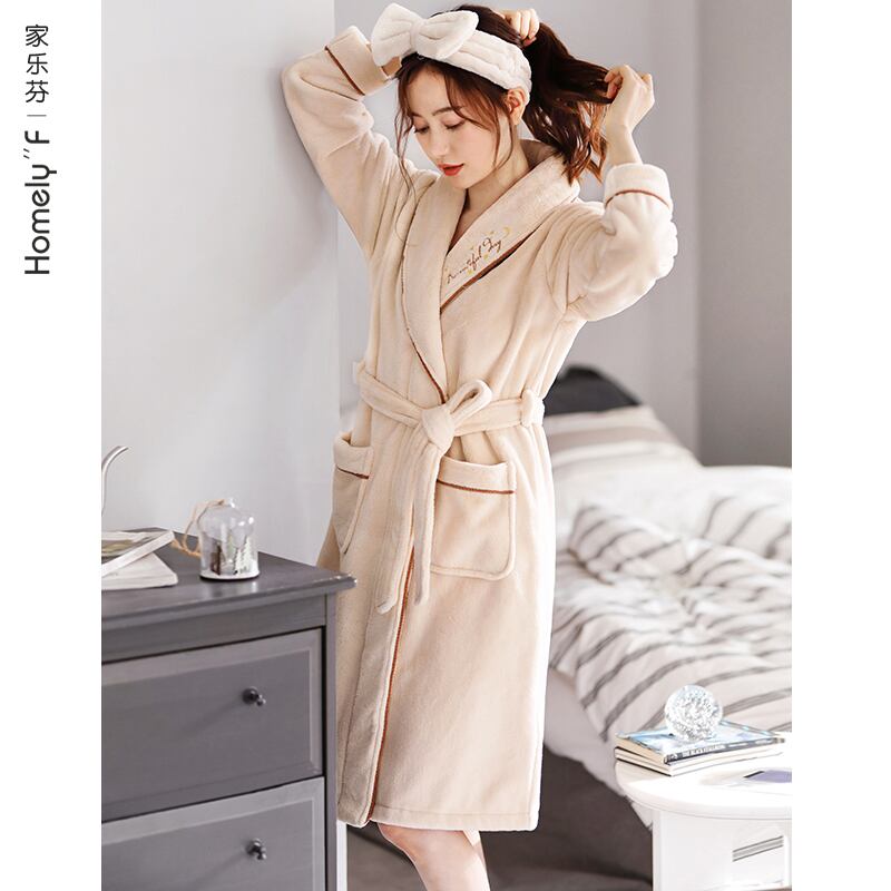 ナイトガウンレディース秋冬ロングコーラルフリース増粘プラスフランネル暖かいバスローブモーニングガウンかわいいプラスサイズ jial4176121241
