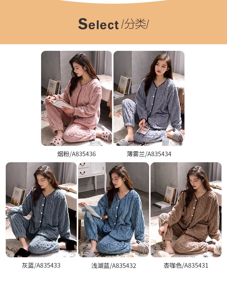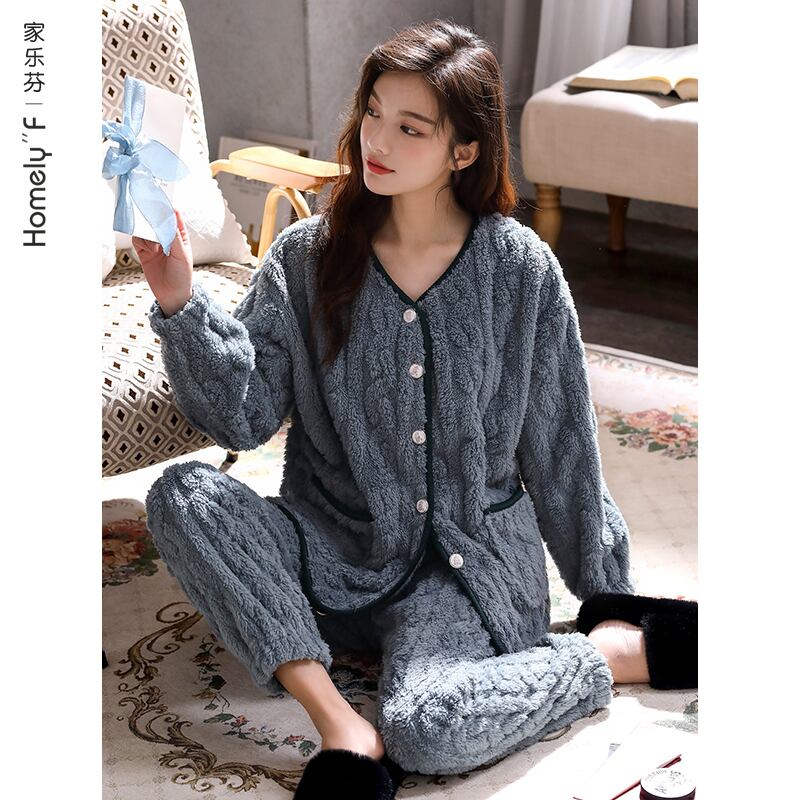 カルフールパジャマレディース秋冬冬コーラルベルベット厚めプラスベルベット暖かさフランネルホームサービス冬 jial23050415741