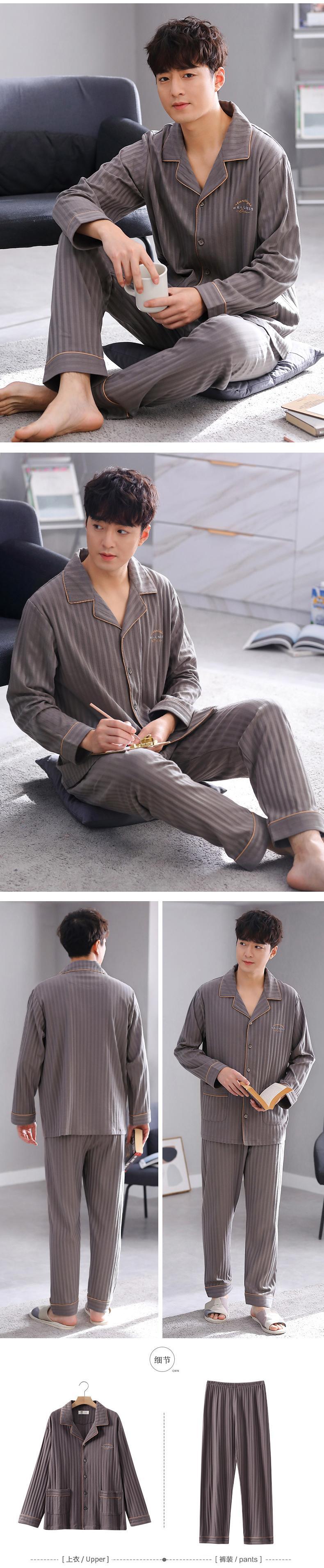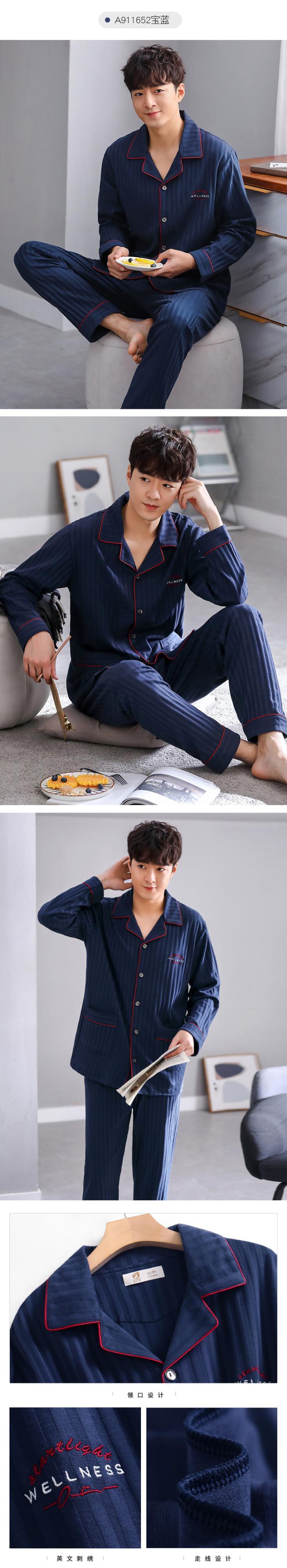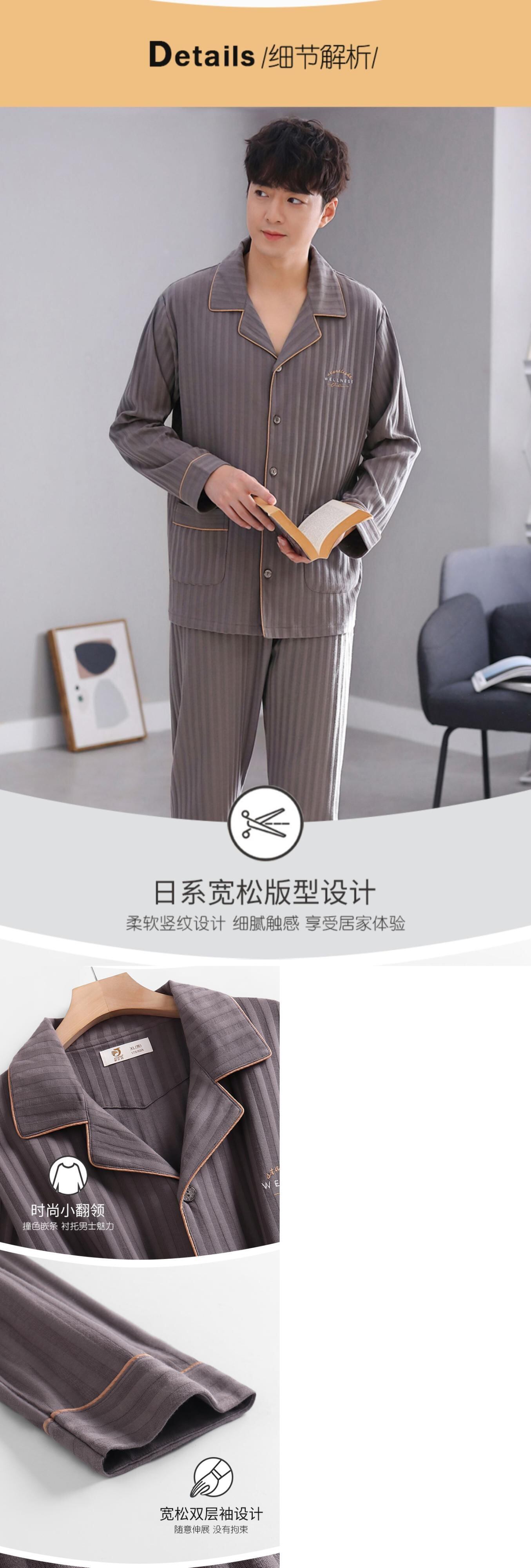 2021年新作パジャマメンズ春秋コットン長袖ホームサービスメンズコットン春夏薄スーツ jial34150337365