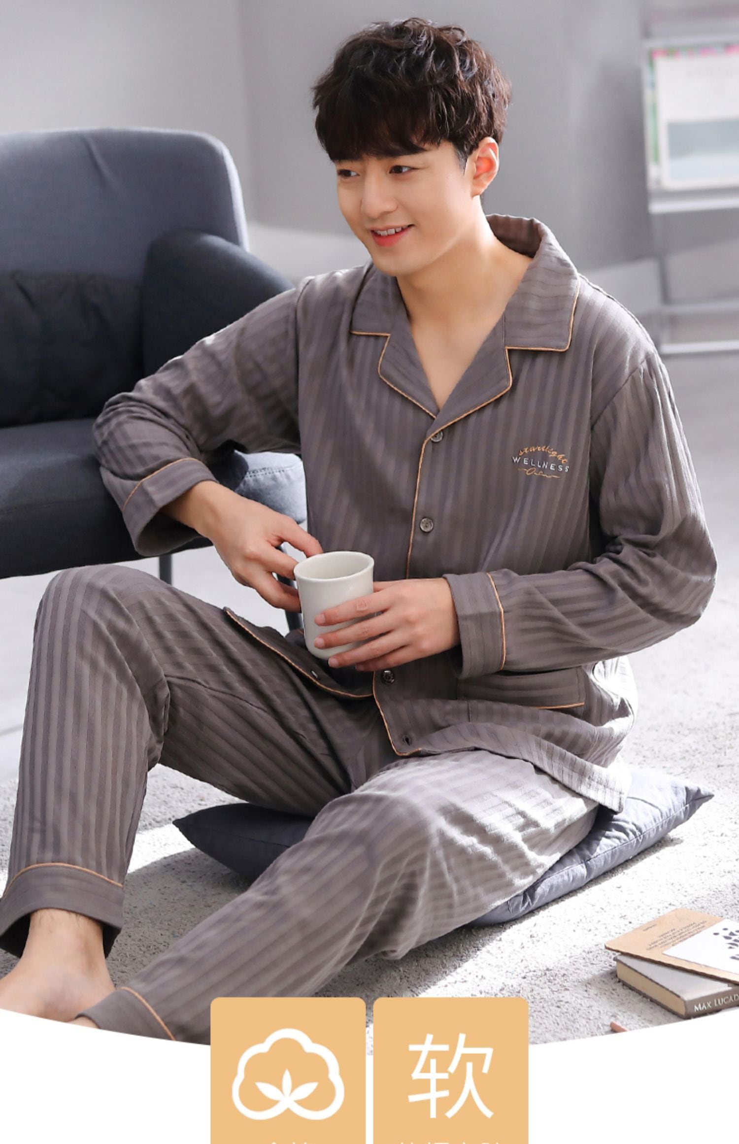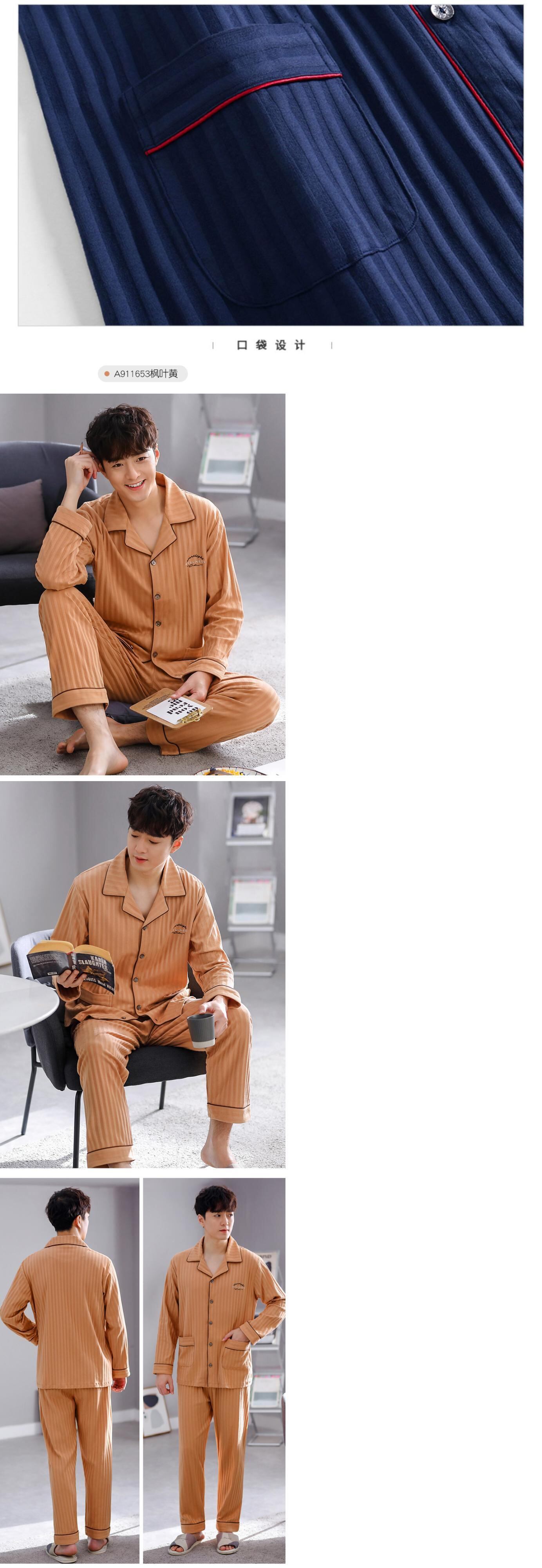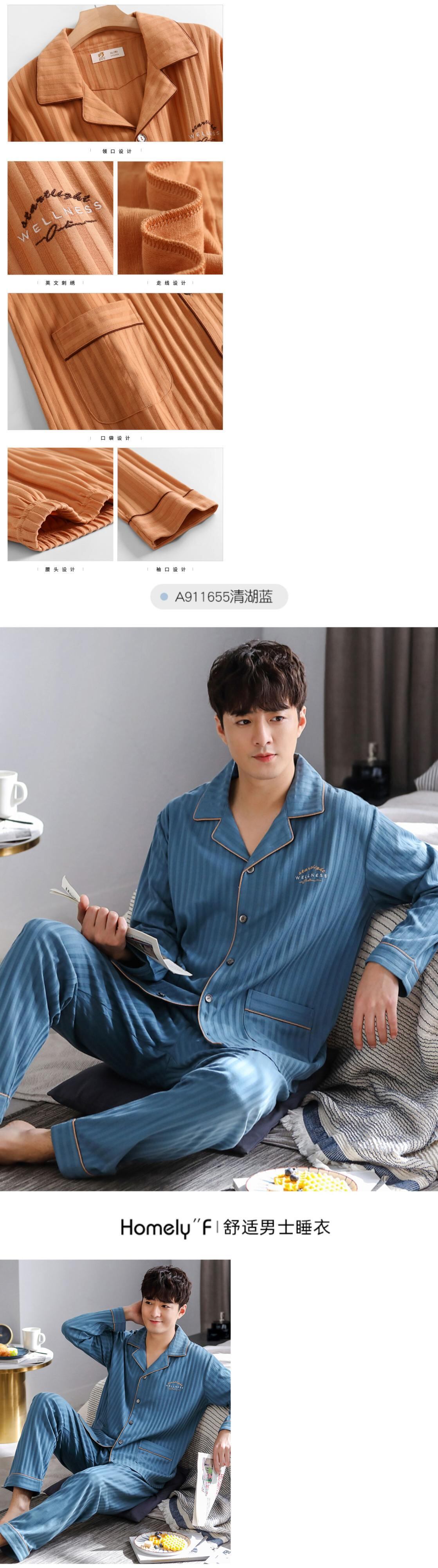 2021年新作パジャマメンズ春秋コットン長袖ホームサービスメンズコットン春夏薄スーツ jial34150337365