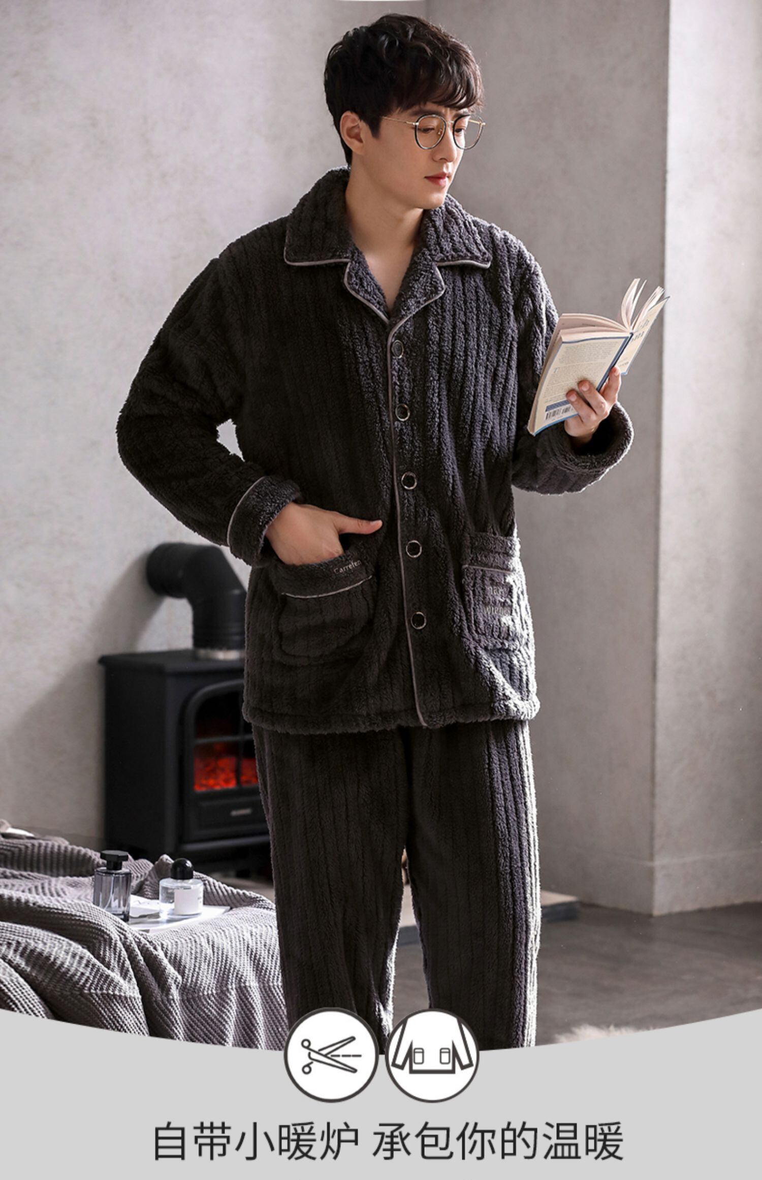 パジャマメンズ秋冬モデルと冬珊瑚ベルベット増粘プラスベルベット暖かさフランネルホームサービスプラスサイズウィンタースーツ jial3555501474