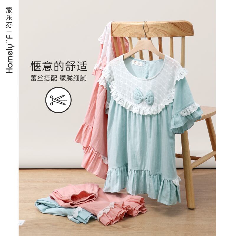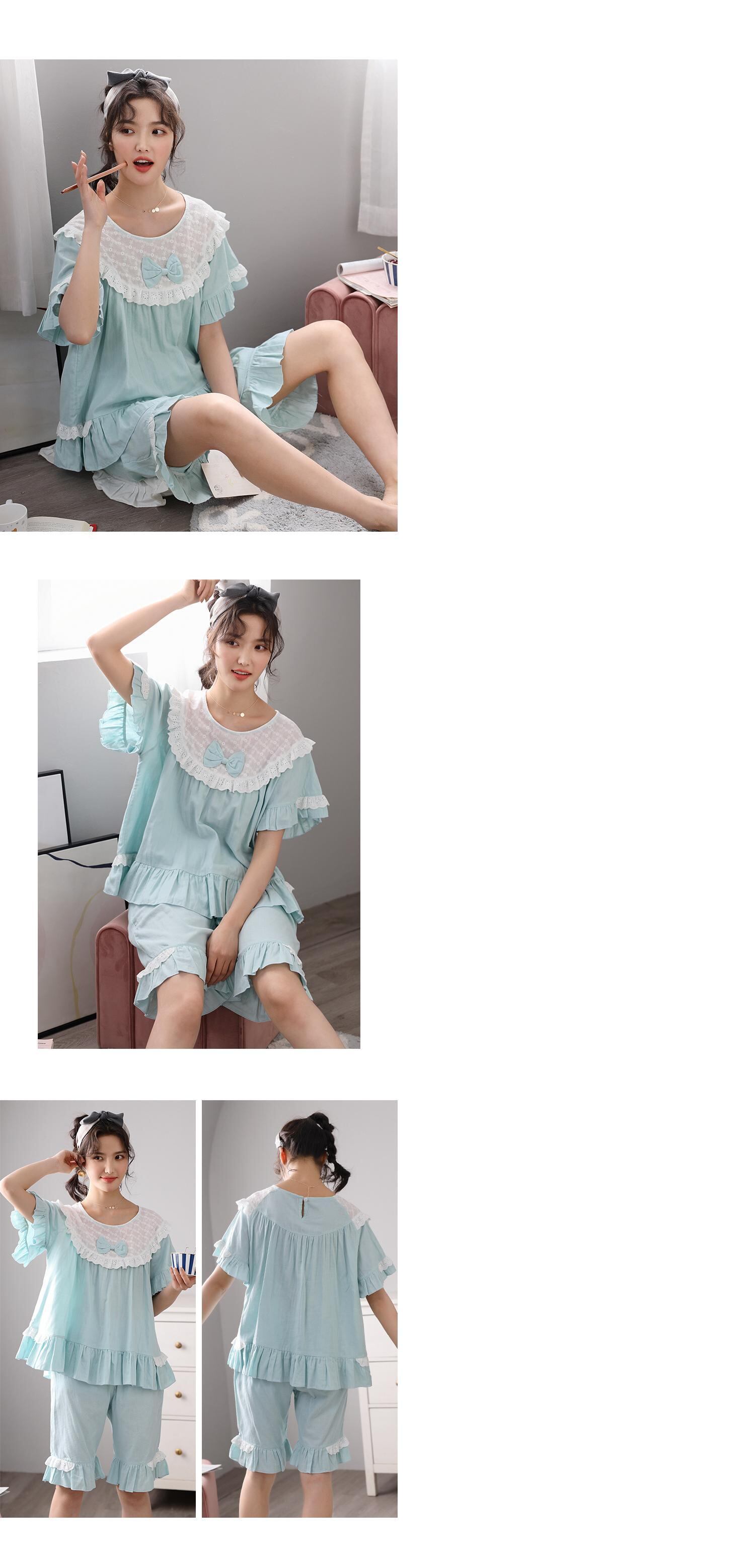 パジャマレディースサマーコットン半袖ショーツホームサービスサマーシンコットンスウィートイーズキュートプリンセススタイル jial32191807552