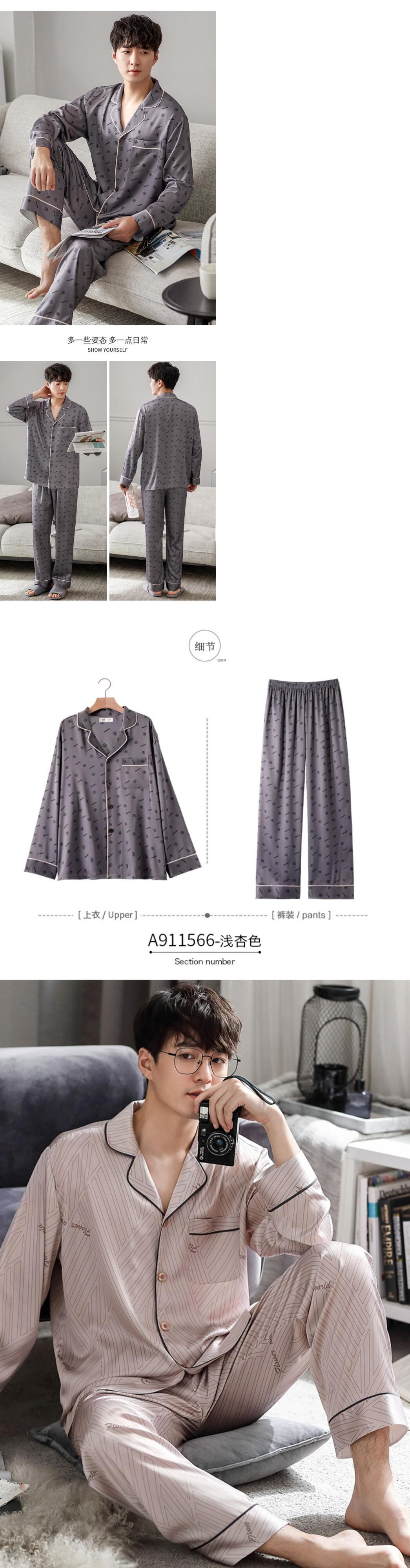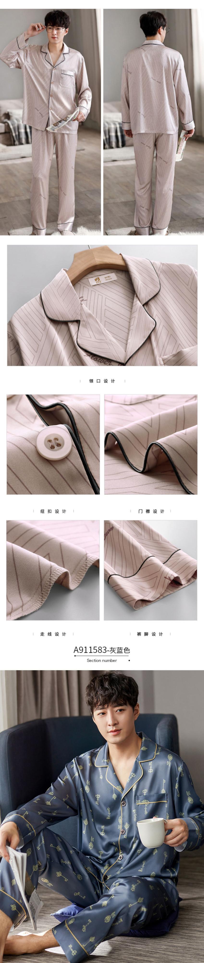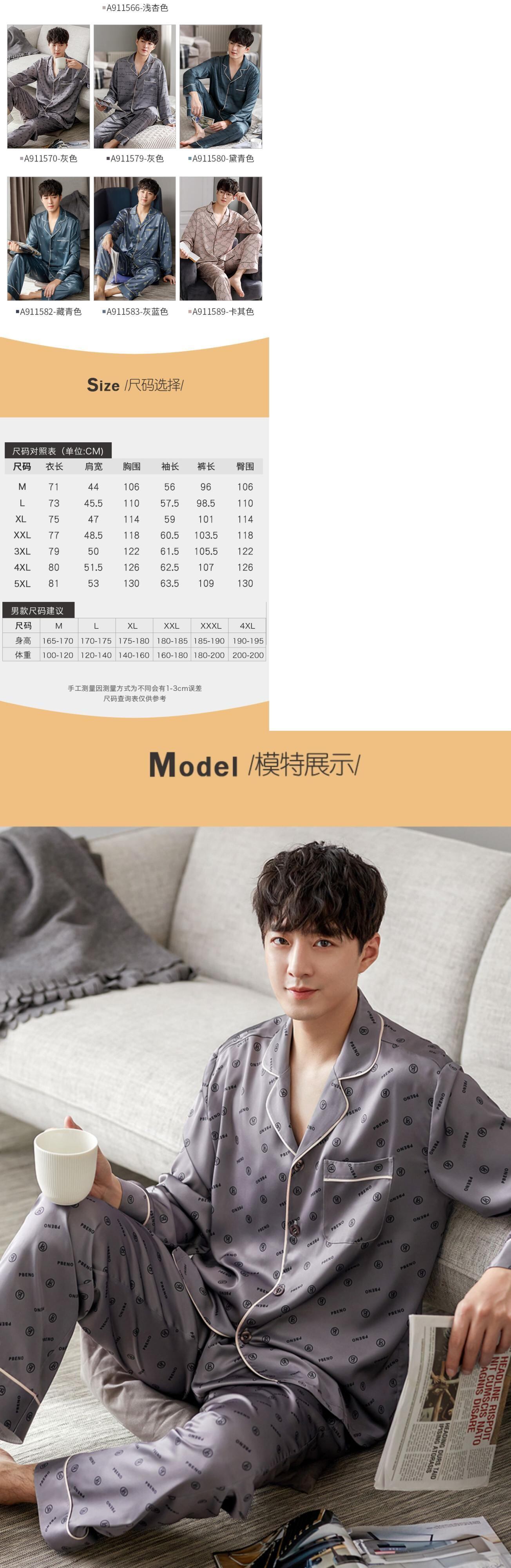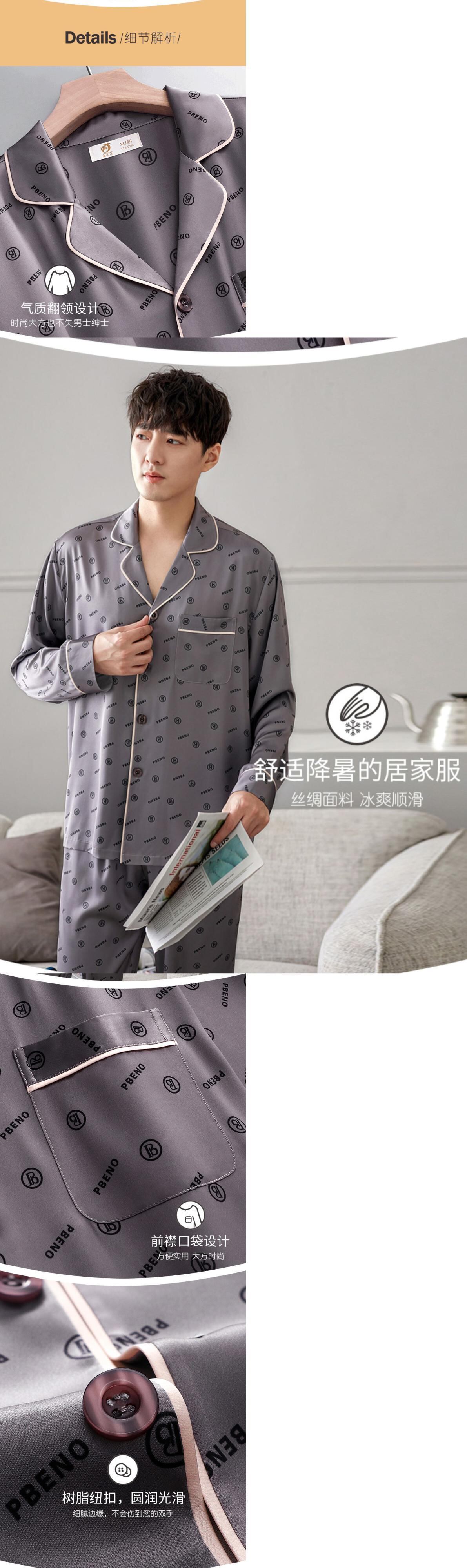 パジャマメンズ春夏夏長袖シルクアイスシルクホームサービス春秋薄サテン模造シルクスーツ jial581158713