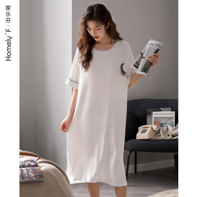 2021年の新しいスタイルのモーダルナイトドレスレディースパジャマ夏と夏の薄い半袖アイスシルクドレスロング jial11512316239