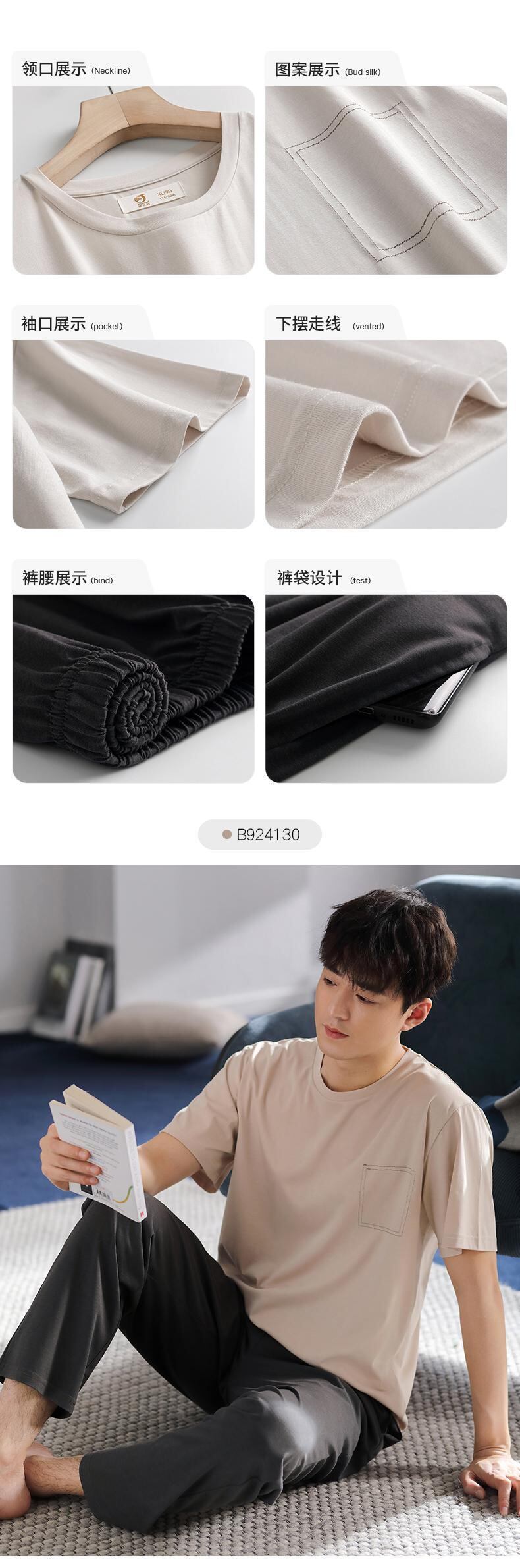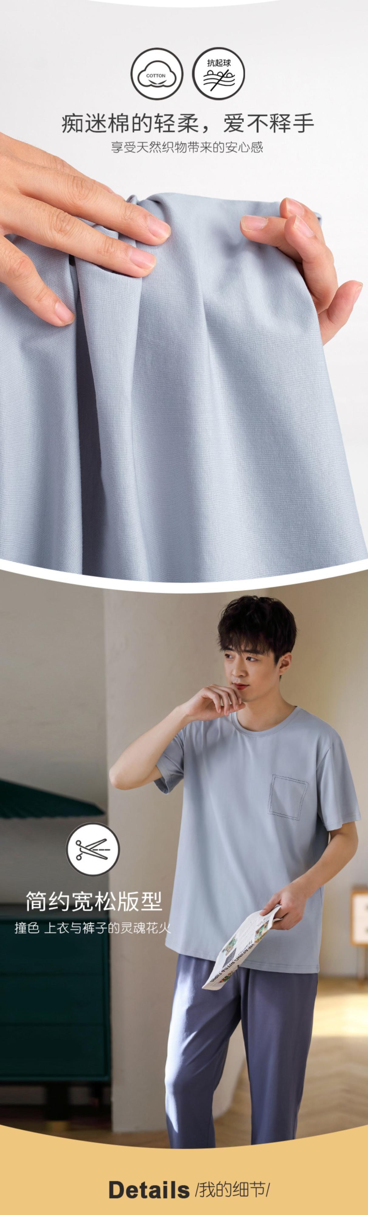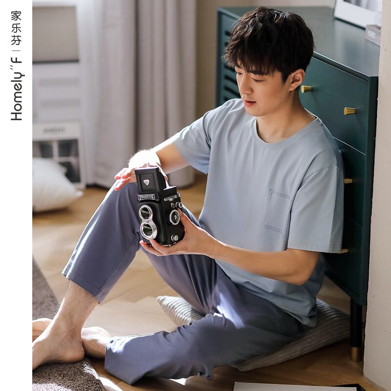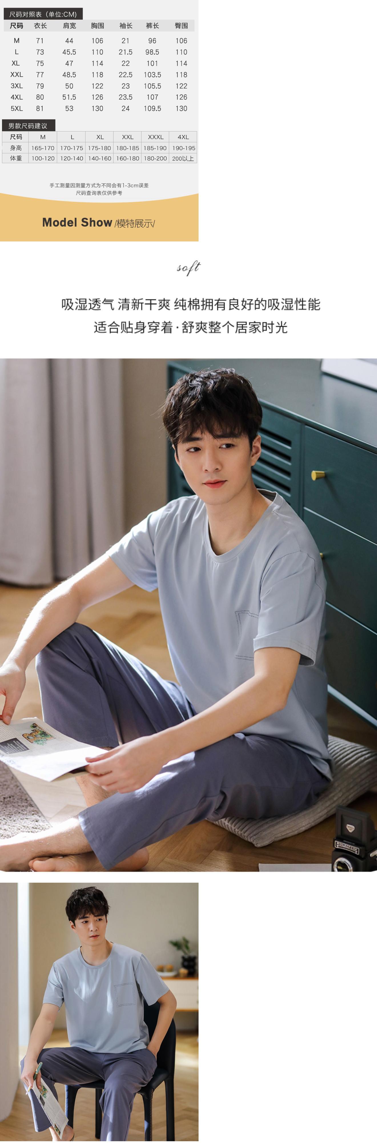 【ライクラコットン】パジャマメンズサマーコットン半袖パンツホームサービスサマー薄手プラスサイズスーツ jial90762687317