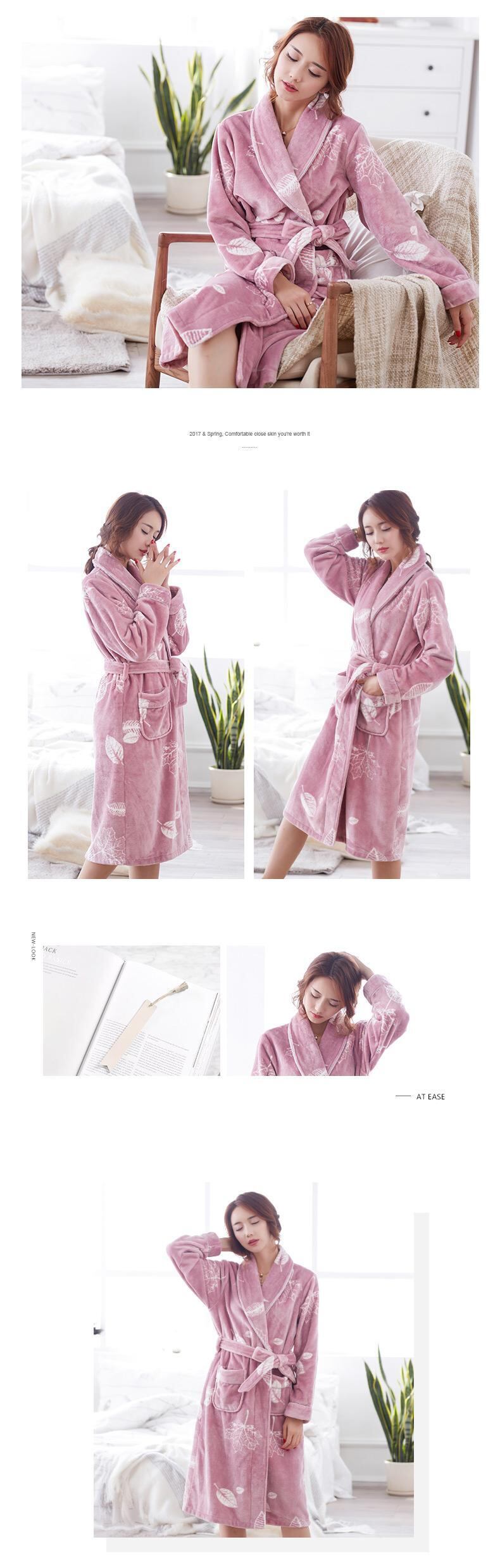 ナイトガウンレディース冬フランネル暖かいプラスベルベットパジャマバスローブバスローブ秋と冬の珊瑚ベルベット肥厚と長い jial24404300473