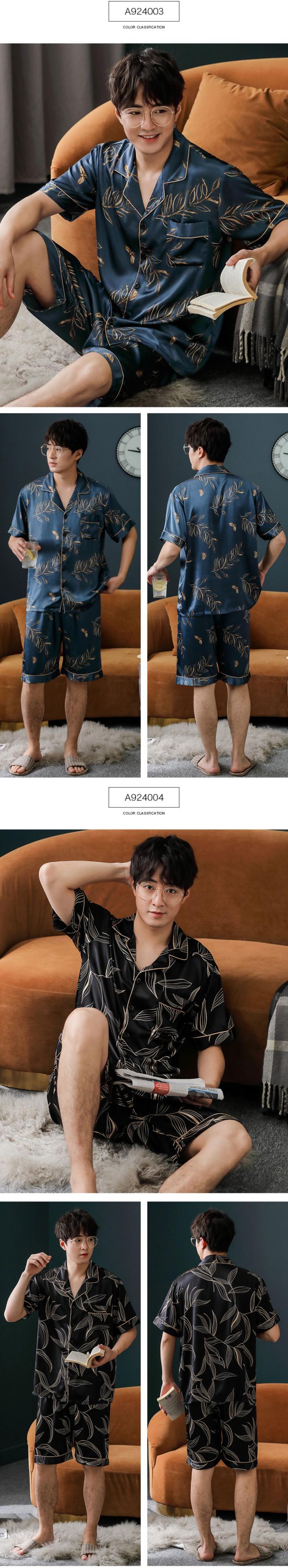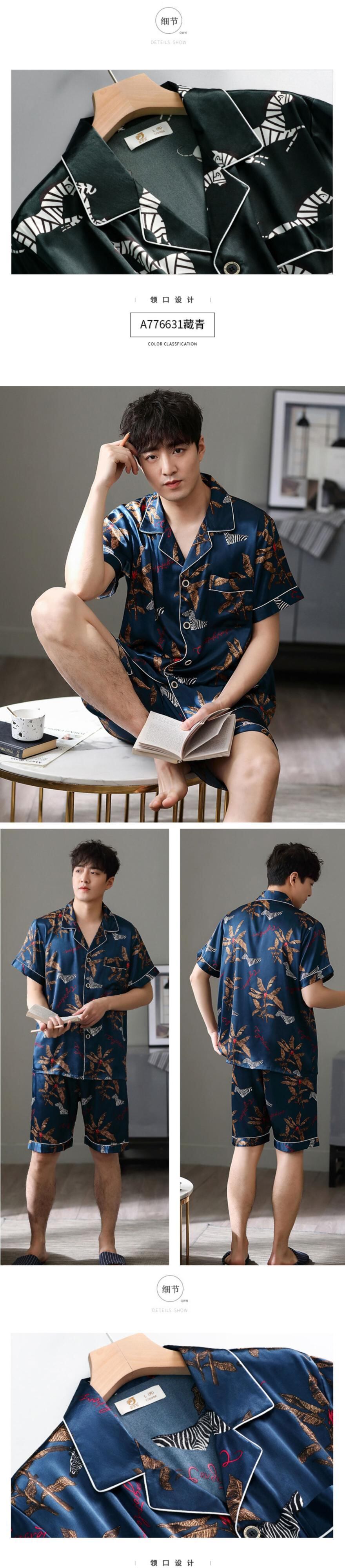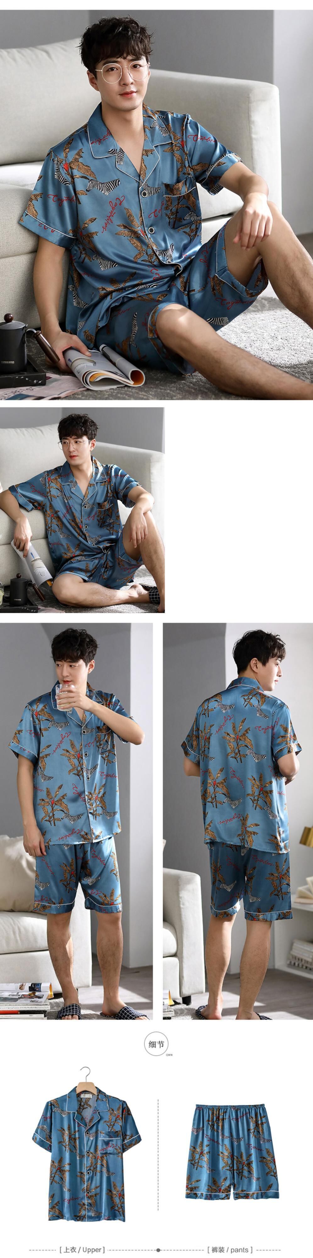 パジャマメンズサマーシルクアイスシルク半袖ショーツホームサービスメンズサマー薄切り模造シルクスーツ jial77748932575