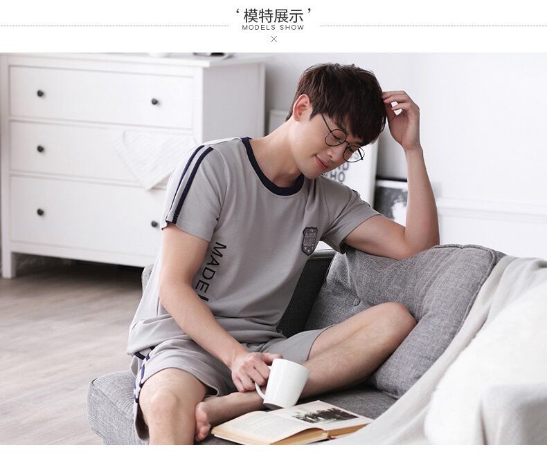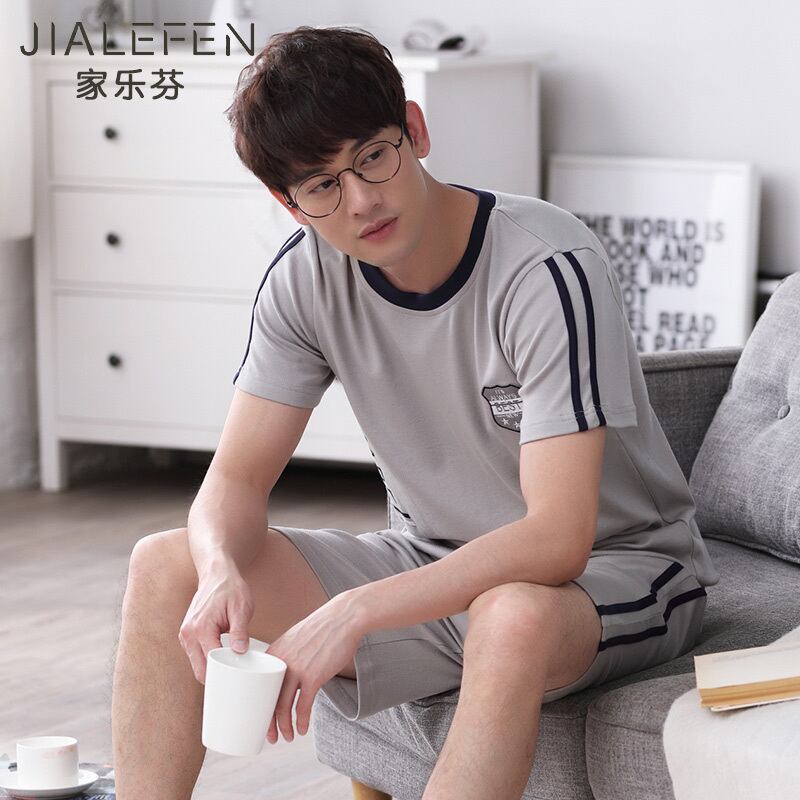 パジャマメンズサマーコットン半袖ホームサービスコットンサマースポーツやレジャーはゆったりとしたラージサイズのスーツの外で着用できます jial16317421759