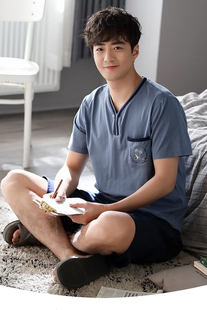 カルフールパジャマメンズサマーモーダルコットンシルク半袖ショーツホームサービスメンズサマーシンメンズスーツ jial37080691974
