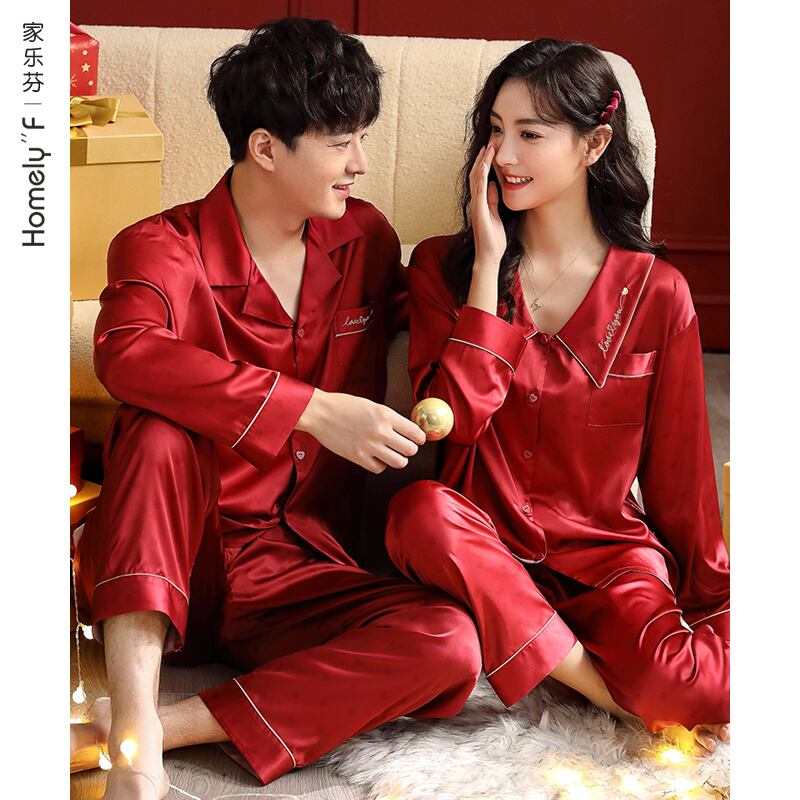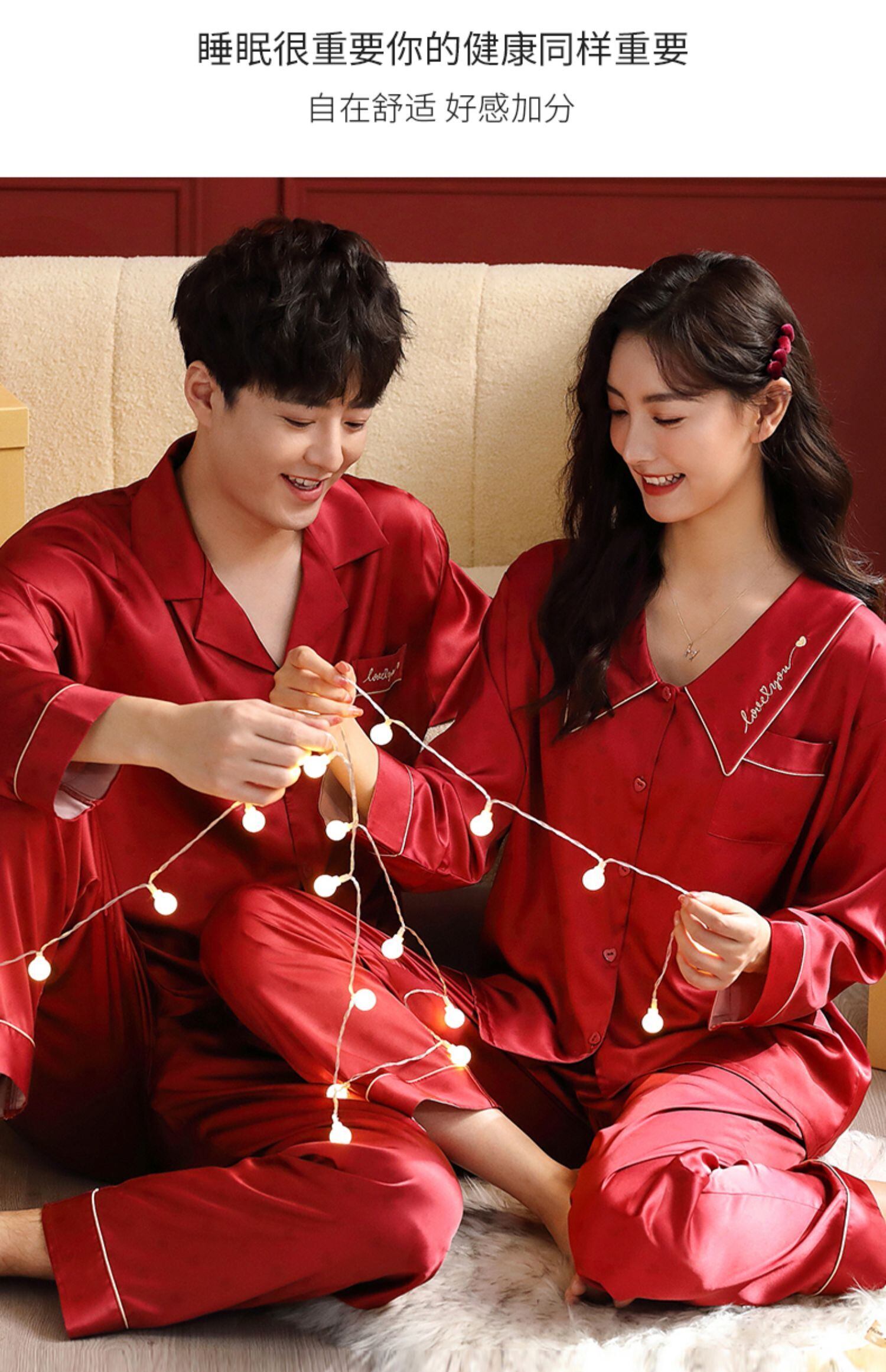 結婚式のパジャマ女性の新婚夫婦のカップルのスーツブライダル赤い絹の高級結婚式の家庭服男性の春と秋のアイスシルク jial62877779894