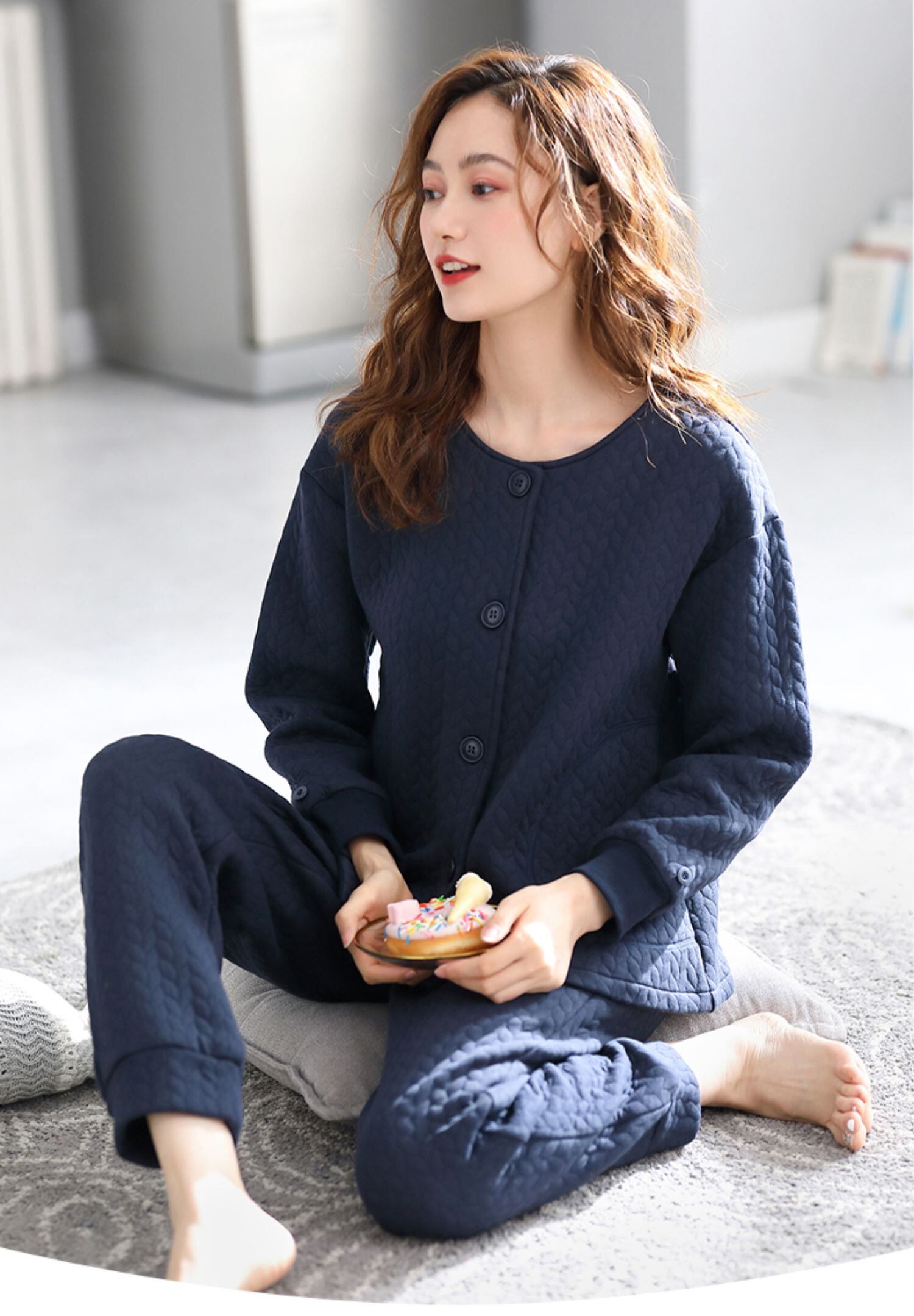 パジャマ女性の春、秋、秋、秋、厚手の純綿、長袖、ホームサービス、秋と冬、エアコットン、キルティング中間層 jial90286949975