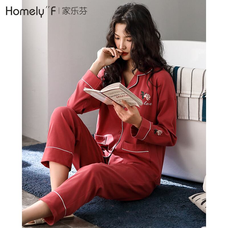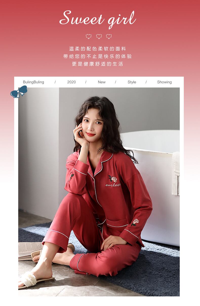 パジャマの女性の春と秋のモデル、秋と秋の綿の長袖の家庭服、綿の春のモデル、薄いモデル、春のカジュアルスーツ jial74457576482