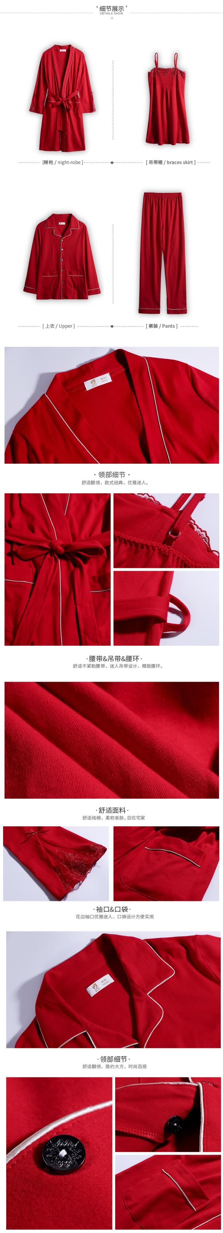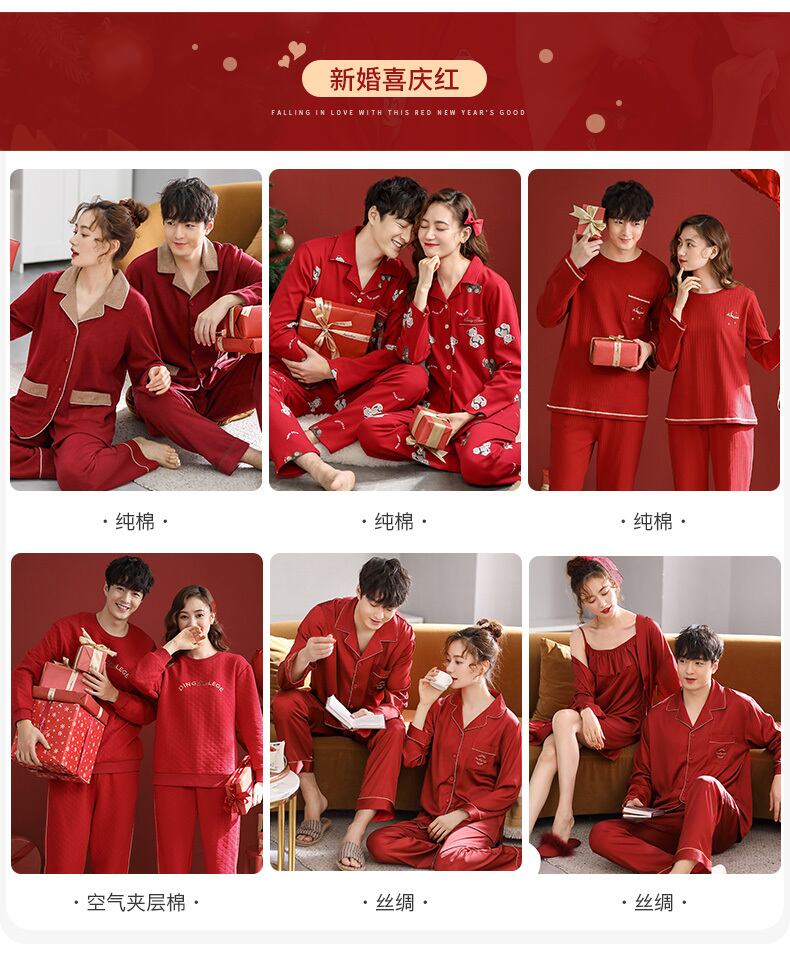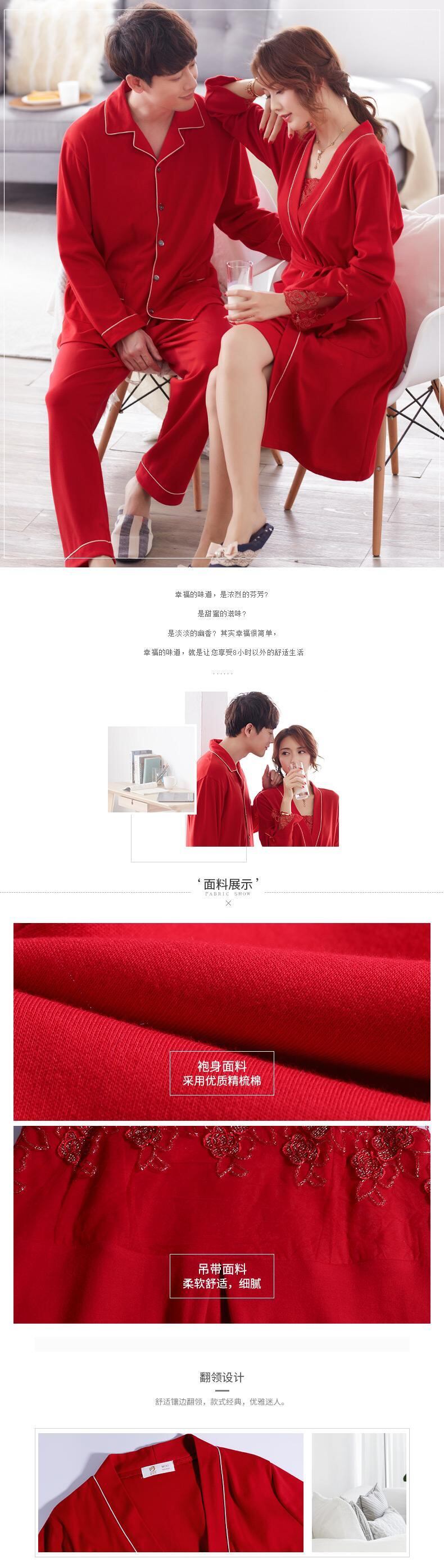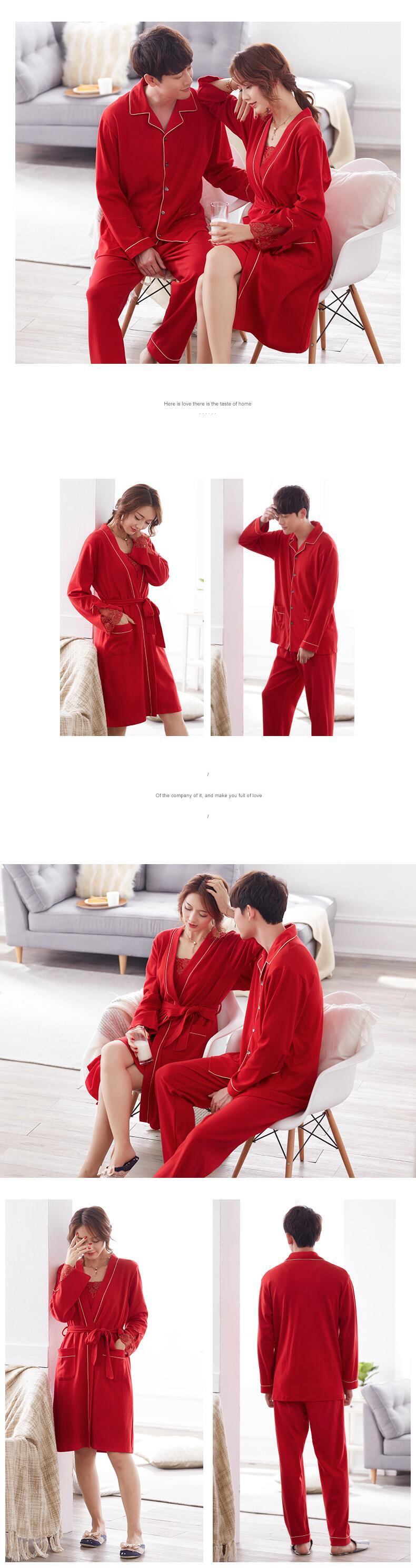 lywed結婚式の花嫁赤いお祭りパジャマカップルドレッシングガウン長袖純綿セクシーなネグリジェナイトガウン女性スーツ jial63481158455