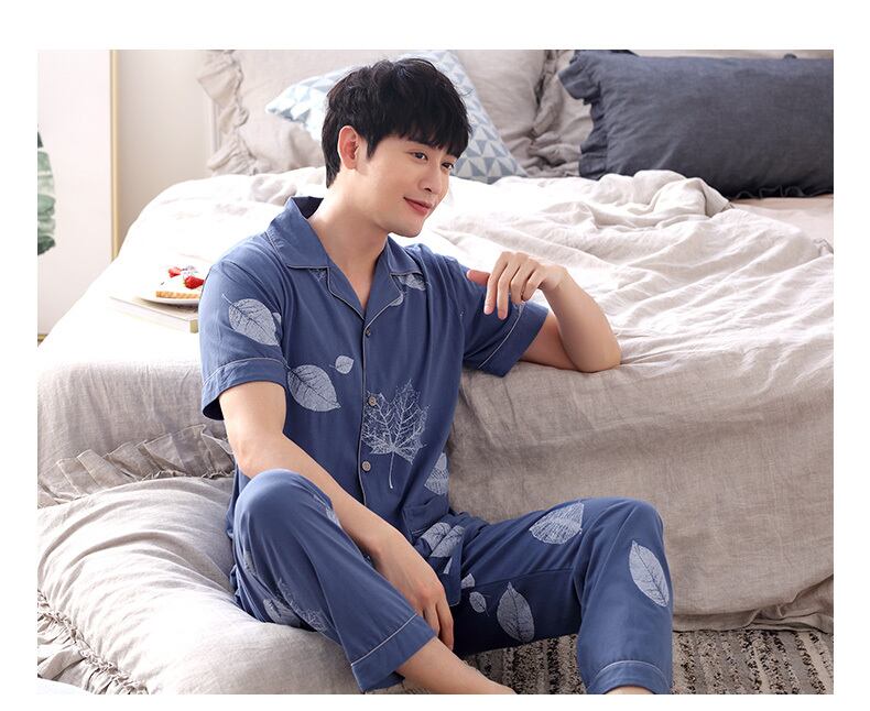 カップルパジャマ、レディースサマーコットン半袖パンツ、ホームサービスメンズサマー薄手、ルーズ、プラスサイズのツーピーススーツ jial284935563