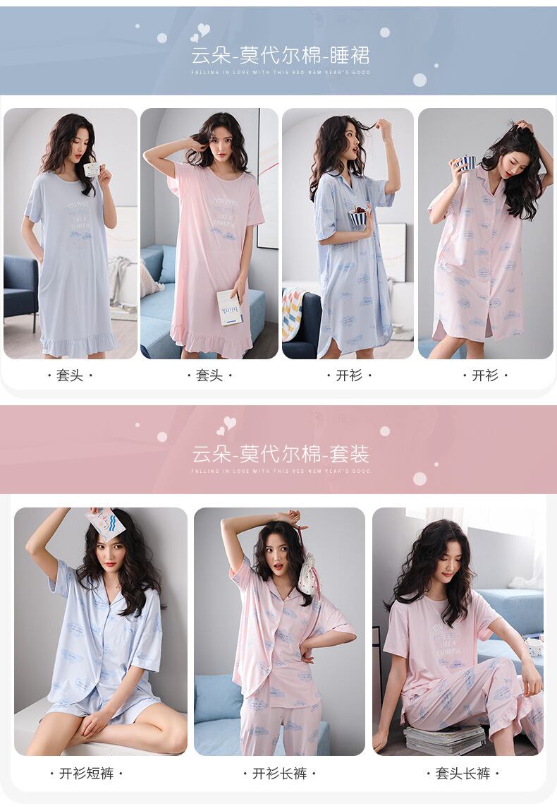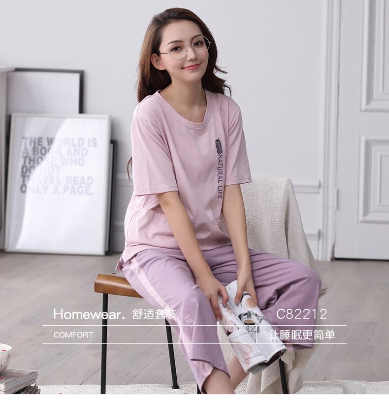 夏のパジャマ女性の夏の半袖ルーズフィット薄い綿のクロップドパンツホームサービスツーピーススーツ jial99705596163