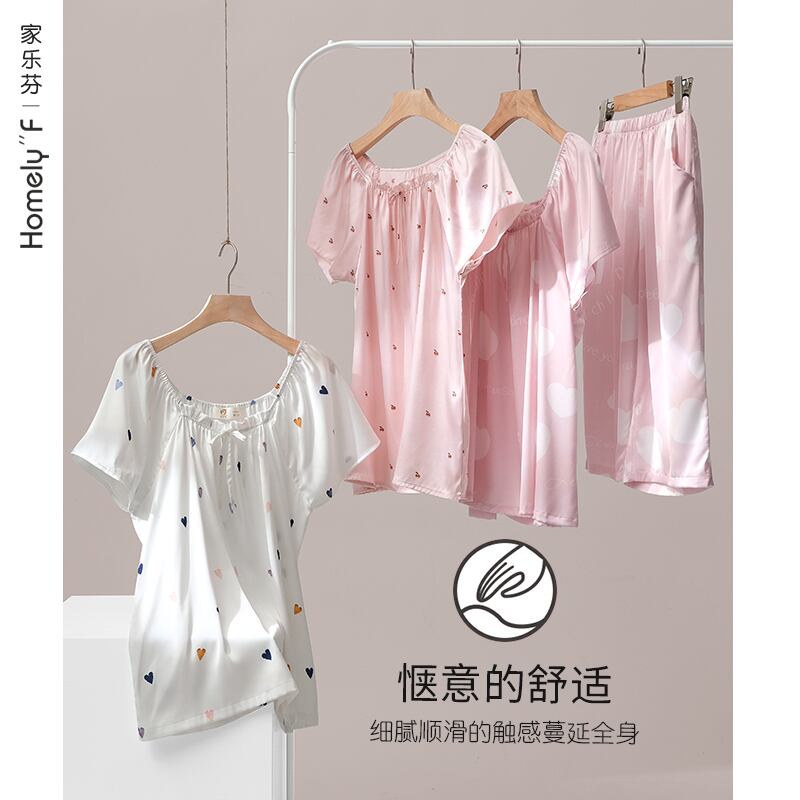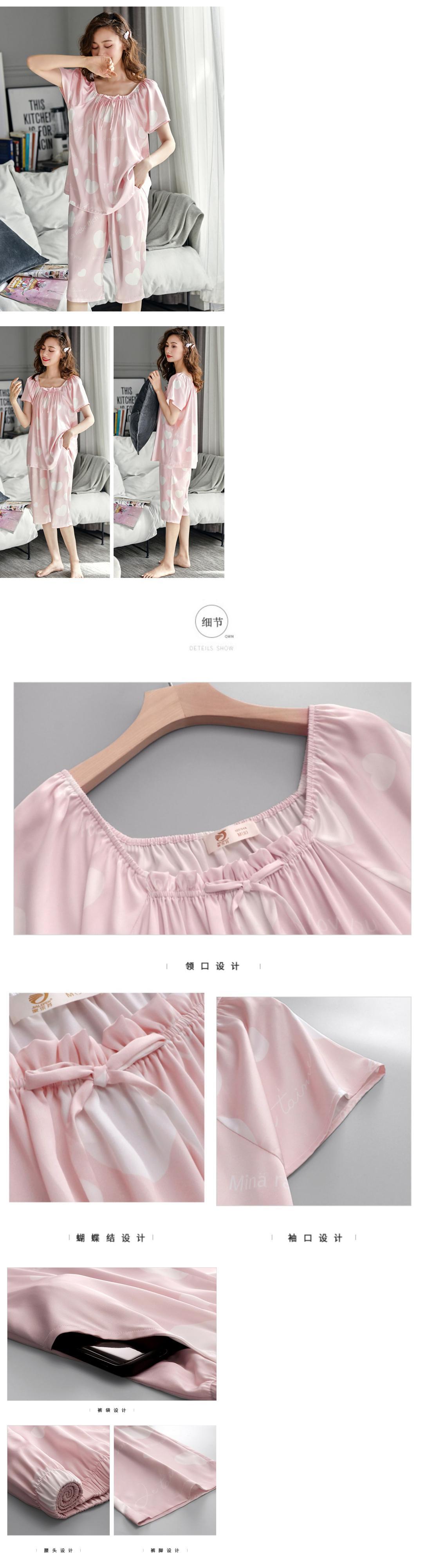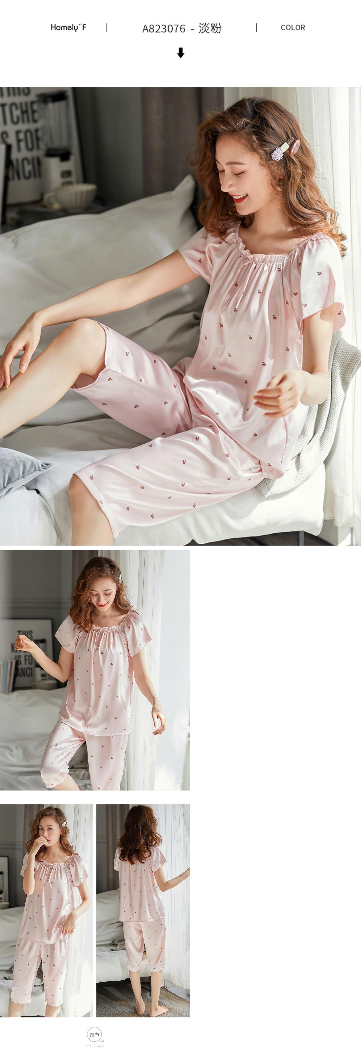 パジャマレディース夏シルクアイスシルク半袖ホームサービス夏薄い甘いeseかわいい模造シルクスーツ jial98305316470