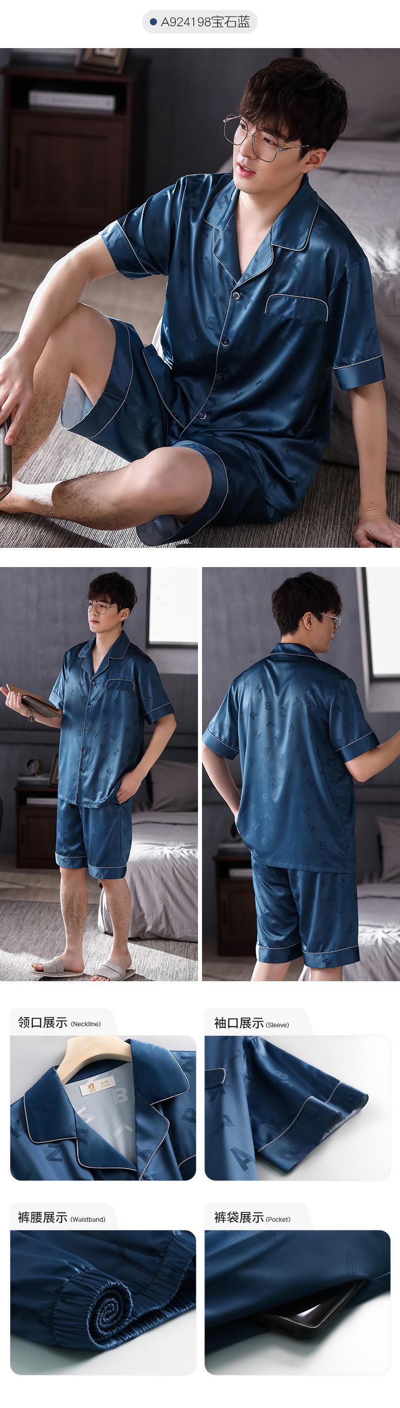 クールパジャマメンズサマーシルクアイスシルク半袖ショーツホームサービスメンズサマー薄切片シミュレーションシルクスーツ jial93934740251