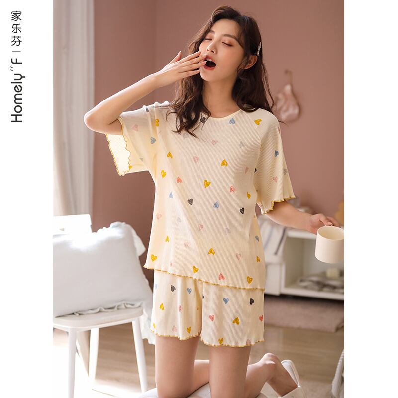 パジャマ女性夏綿半袖ショーツホームサービス夏薄綿かわいいese甘いスーツ jial77442381931