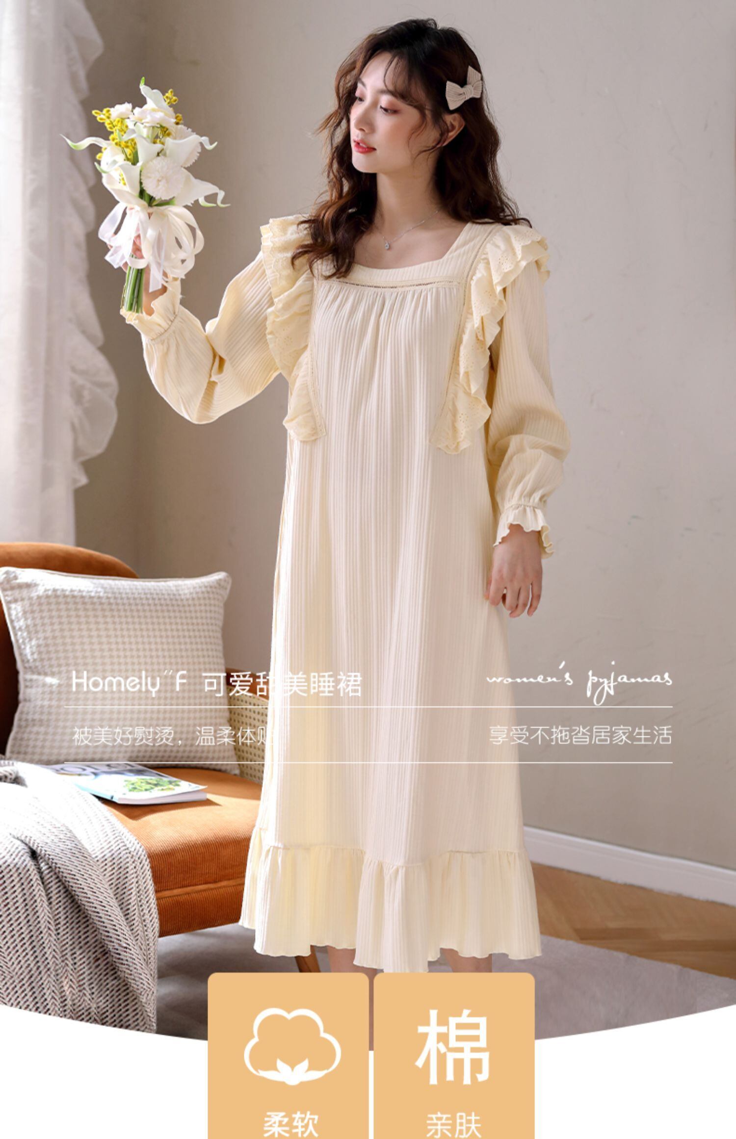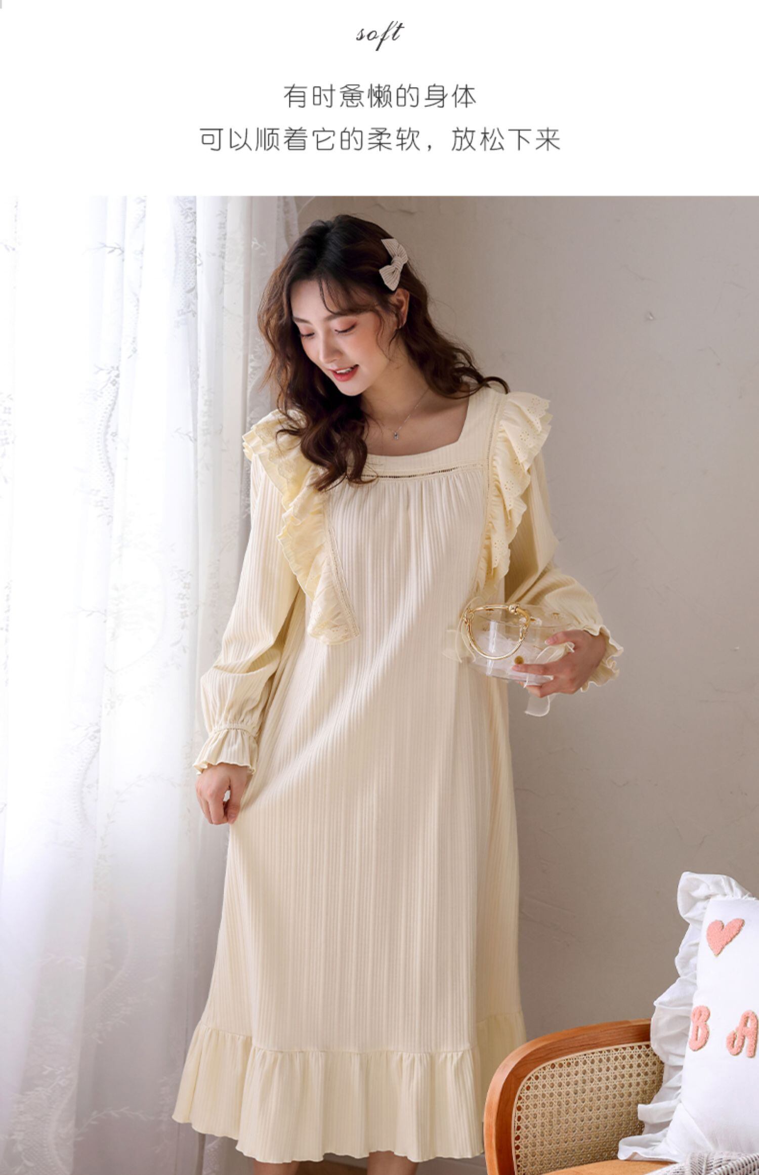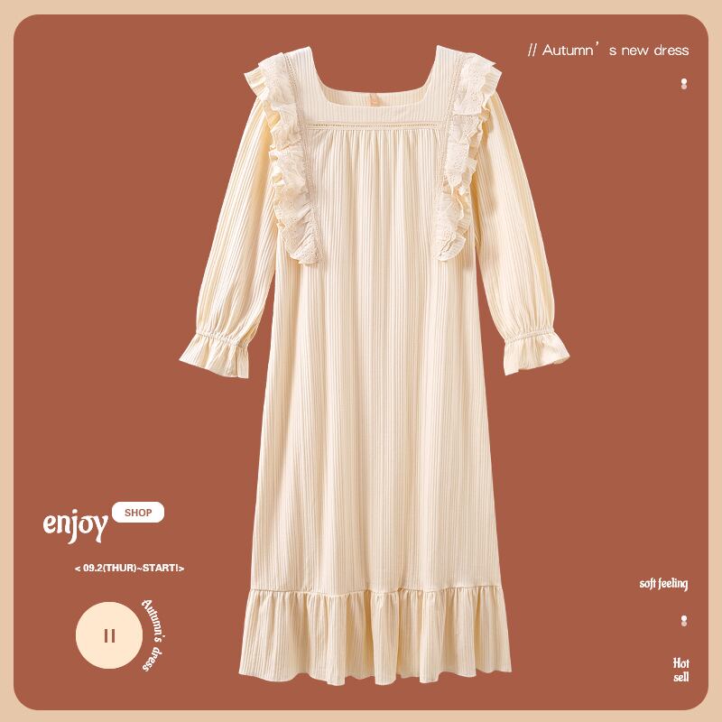 ネグリジェレディースパジャマ春秋モデル秋長袖コットン純綿薄手春夏ロングキュートプリンセスプラスサイズ jial32488196246